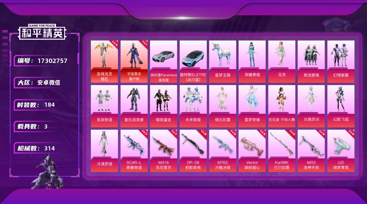 不议价,很多优质套装,自己看截图很全,九把升级枪,三绝世印记,最高24星。