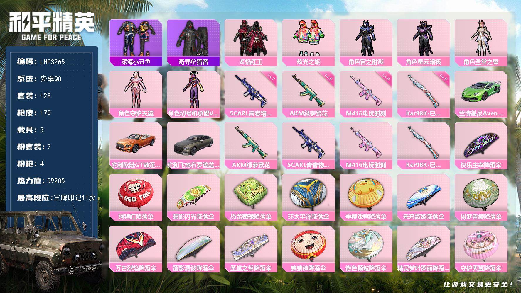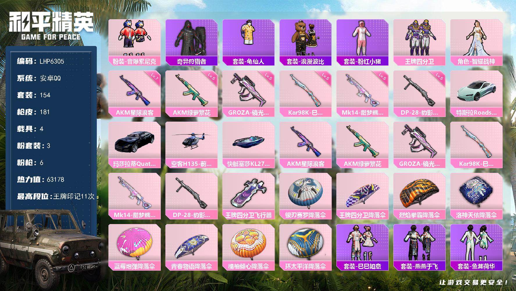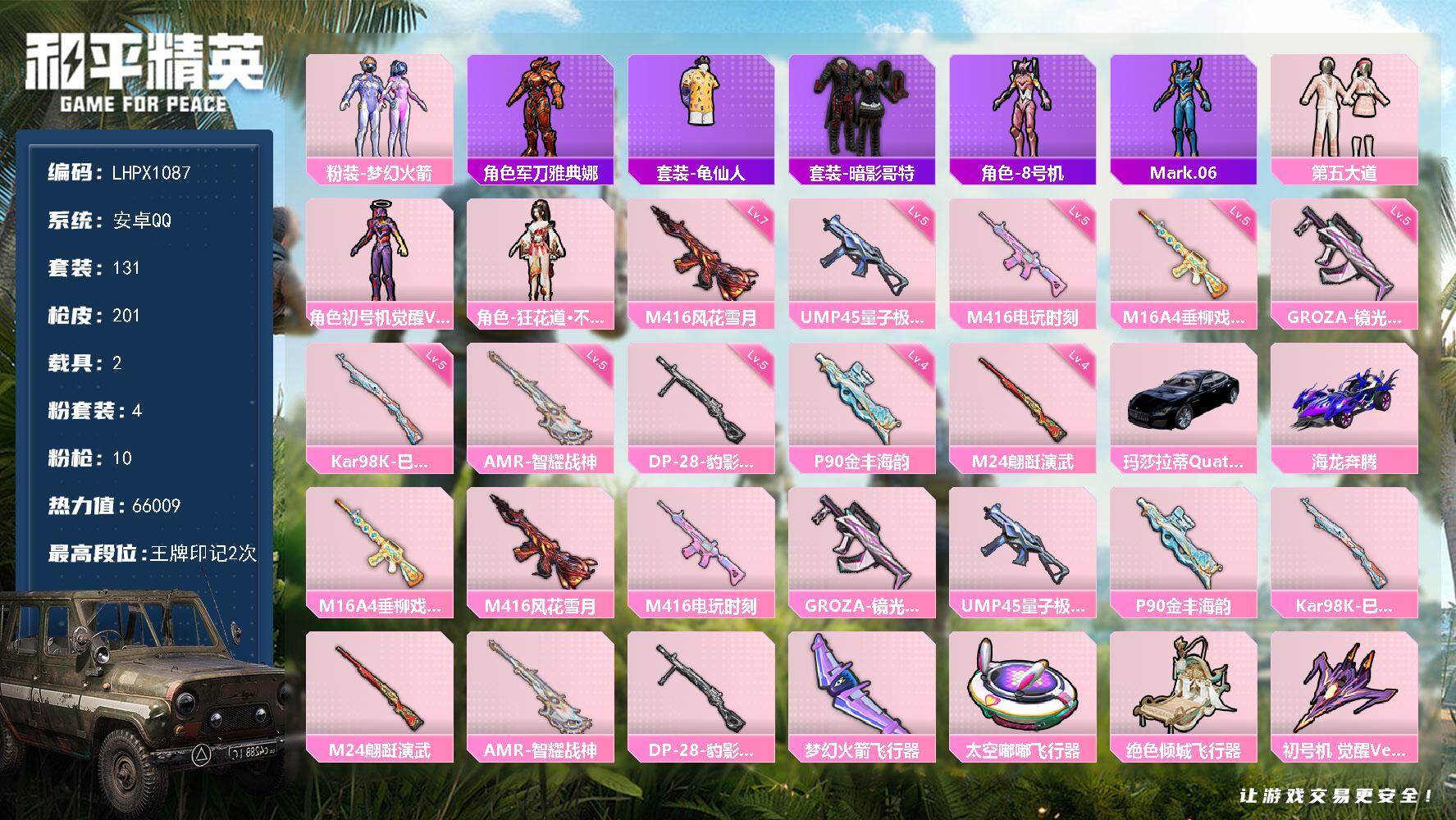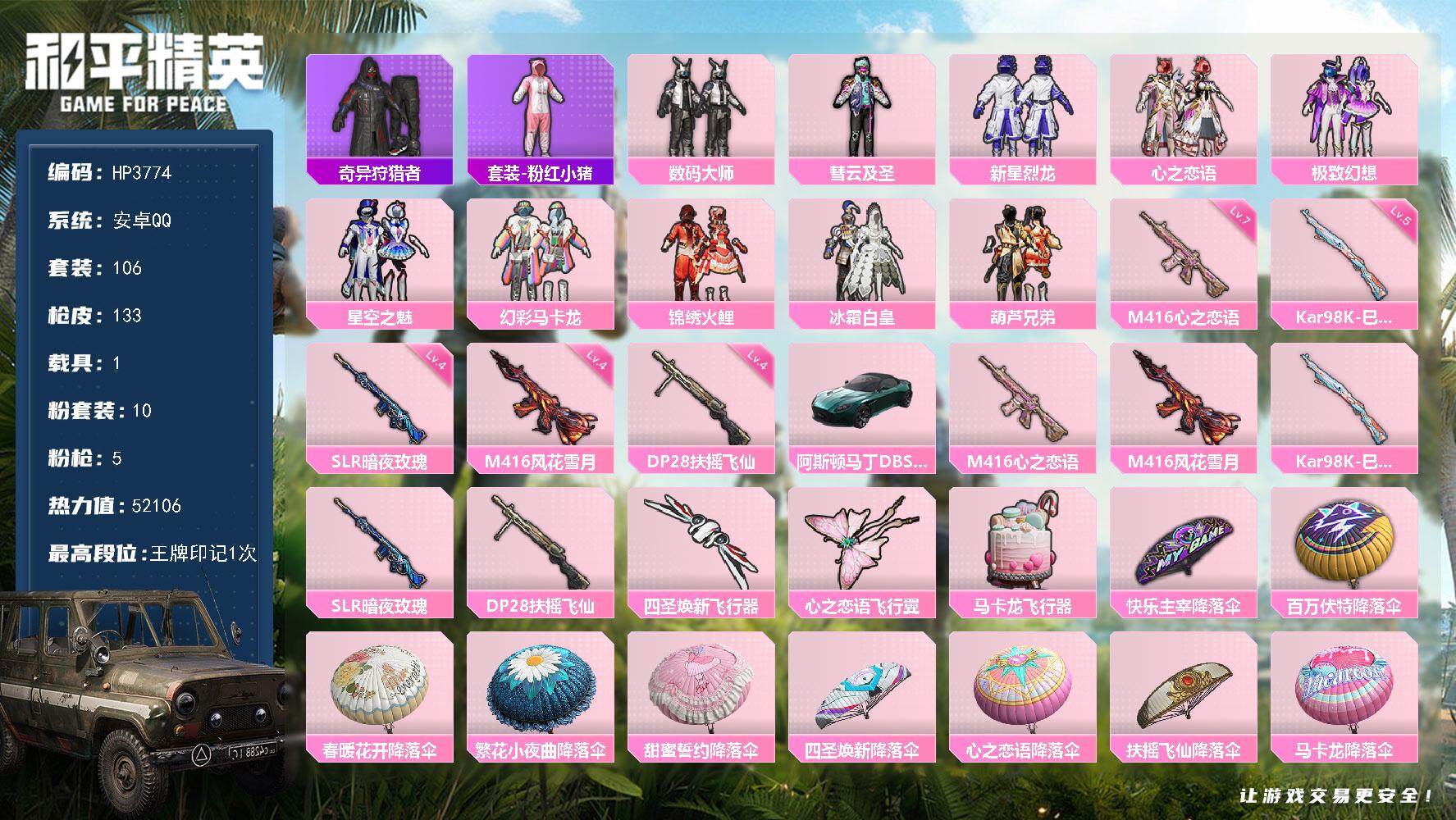【店主推荐捡漏号!可直接换绑】安卓 手Q-3粉装-6特效枪-4载具-1粉色飞行