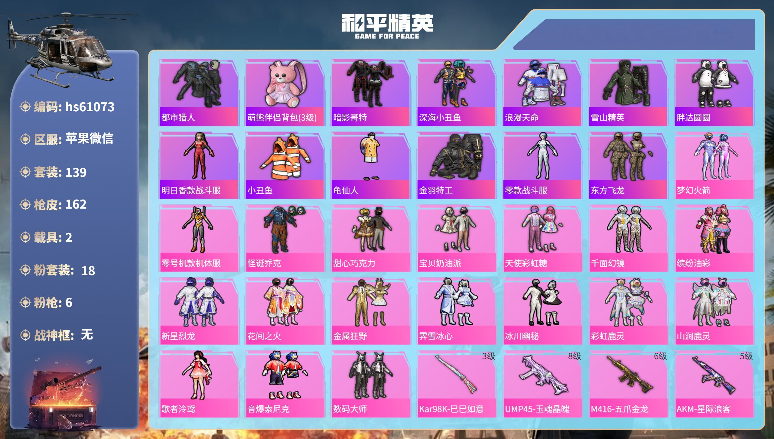 hs61073 苹果v-13王牌印记-18粉装-6特效枪-2载具-63102热力值-139套装-1