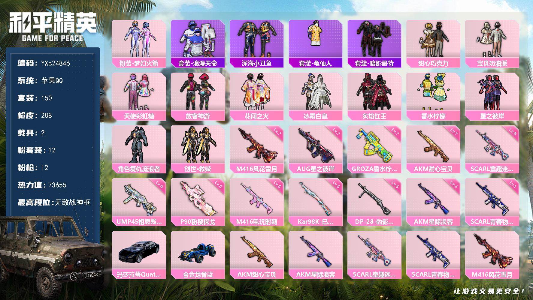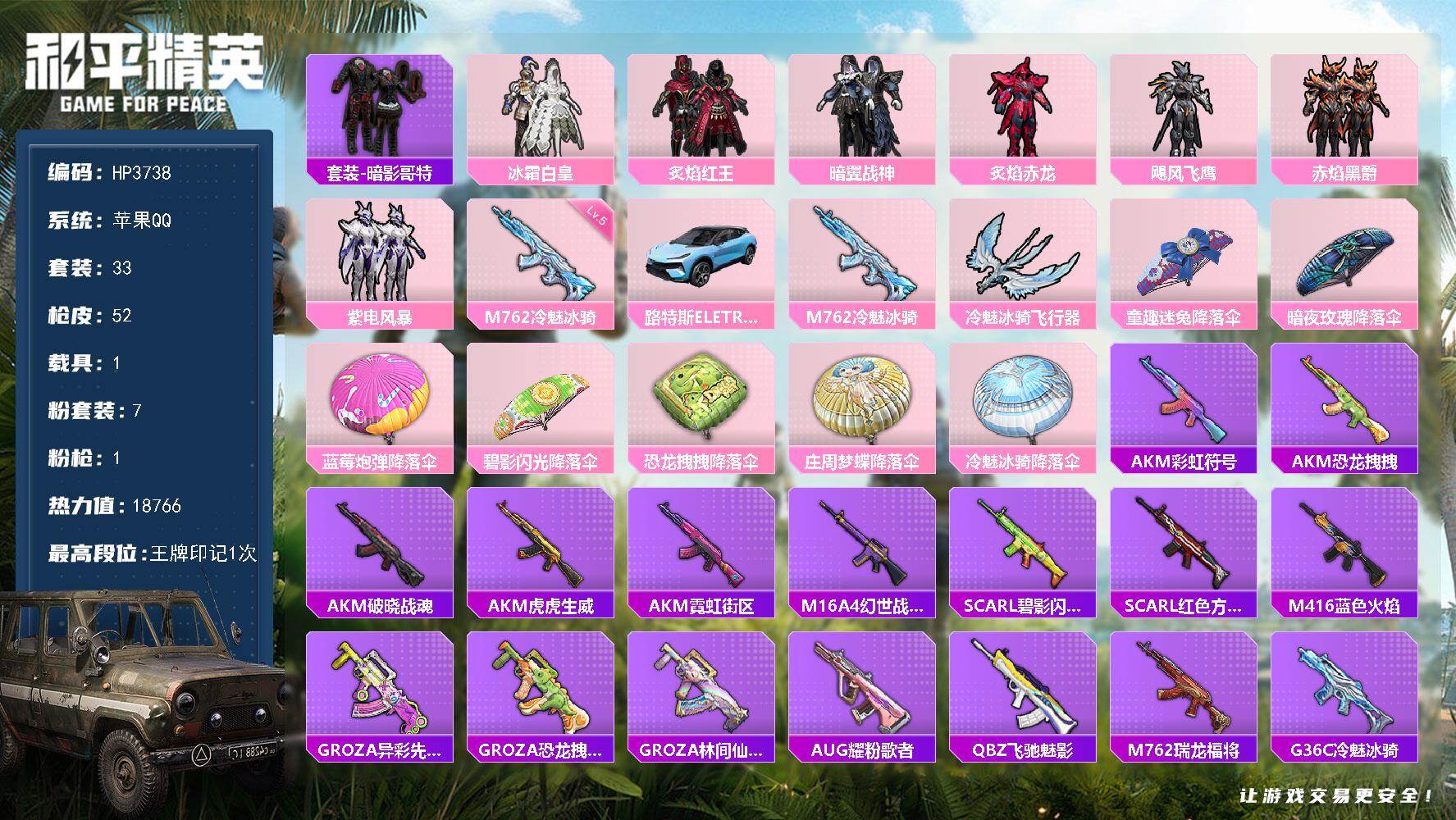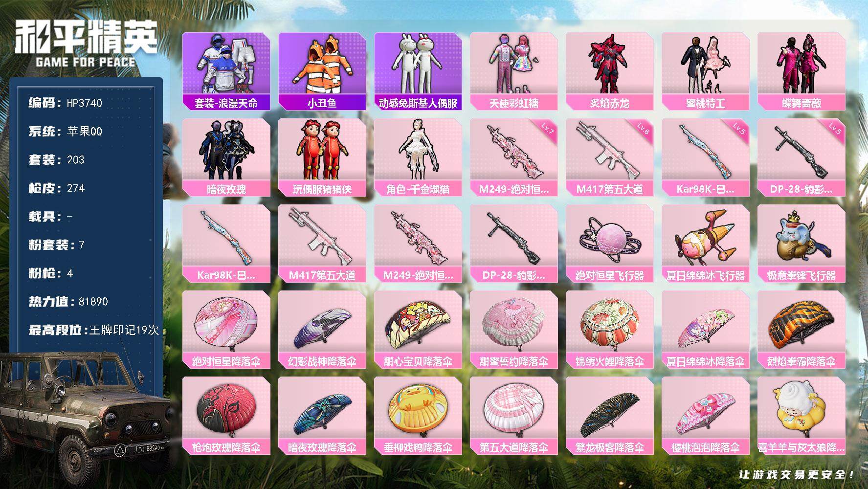 苹果 手Q-7粉装-4特效枪-0载具-4粉色飞行器-81890热力值-19王牌