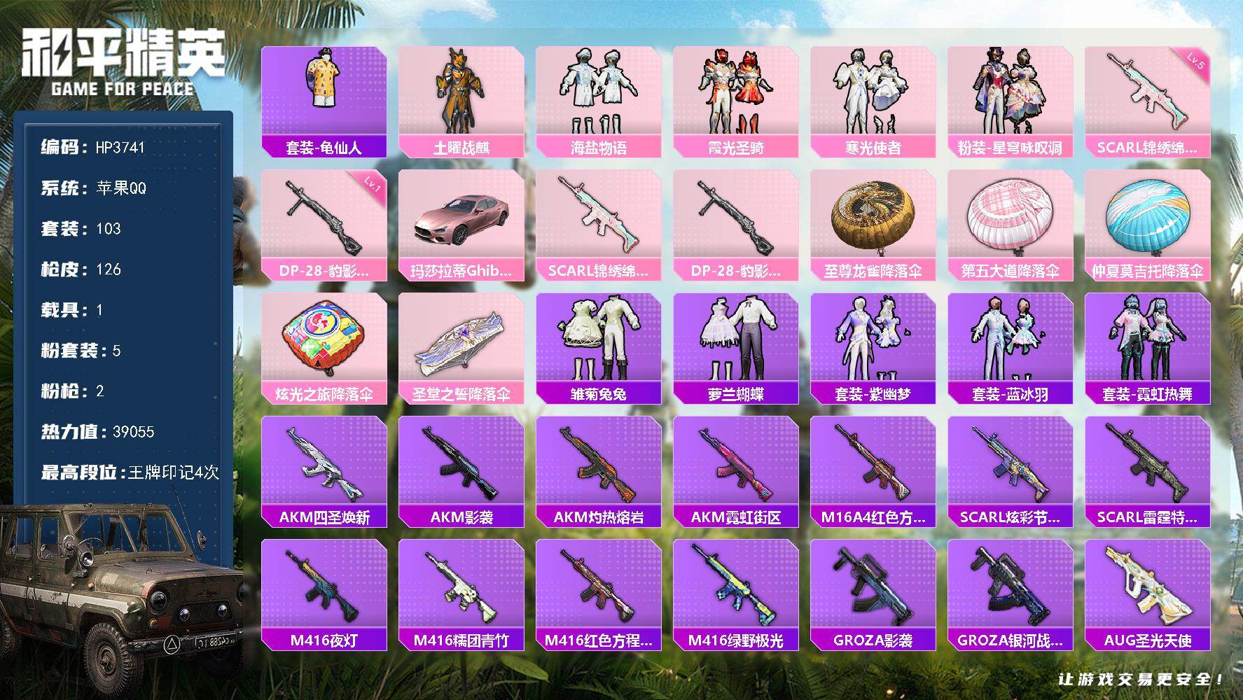 苹果 手Q-5粉装-2特效枪-1载具-0粉色飞行器-39055热力值-4王牌印