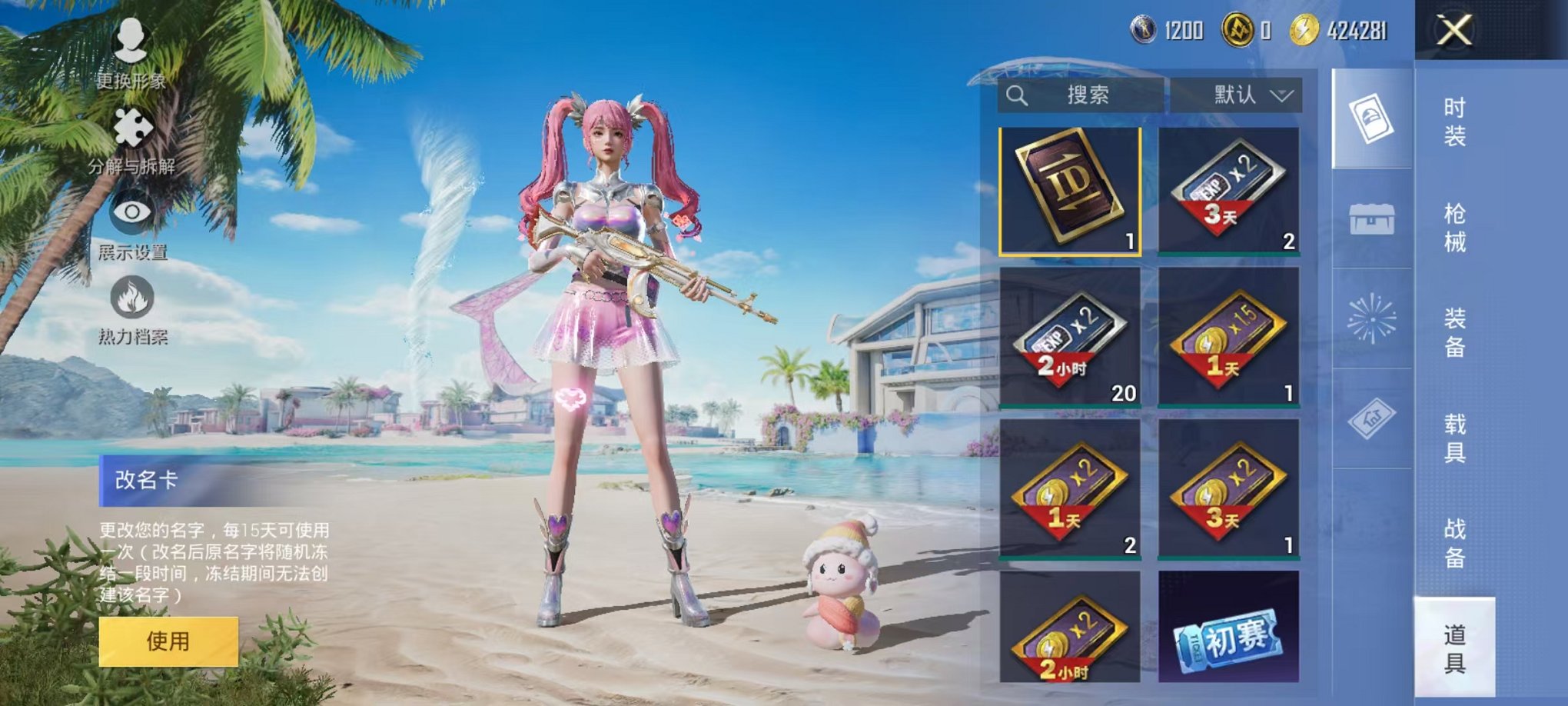 安卓 手Q-1粉装-11特效枪-1载具-2粉色飞行器-64410热力值-9王牌