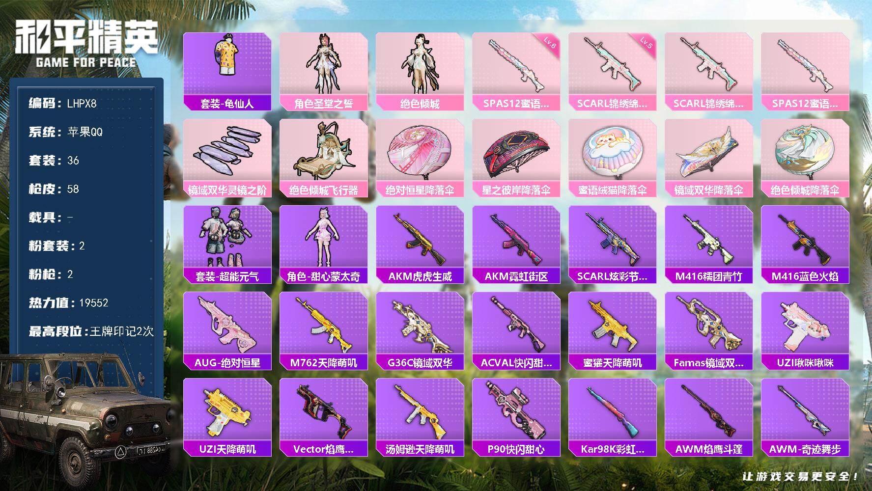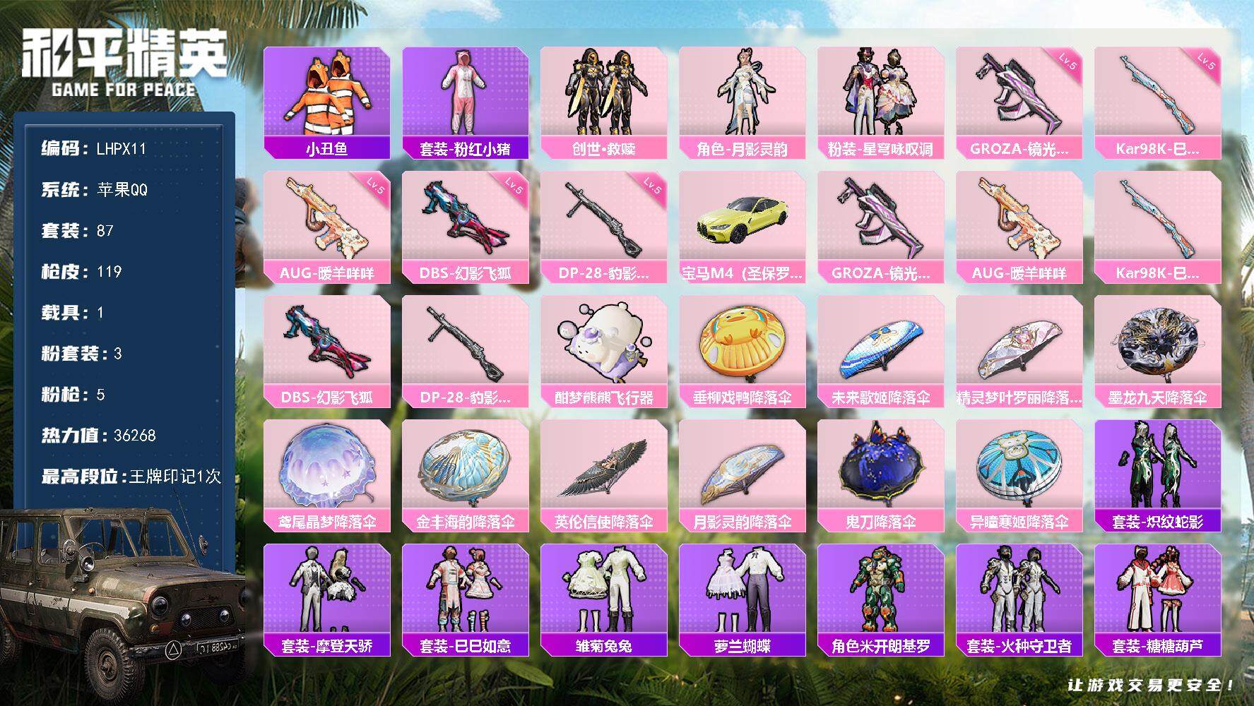 【店主推荐捡漏号!可直接换绑】苹果 手Q-4粉装-5特效枪-1载具-1粉色飞行