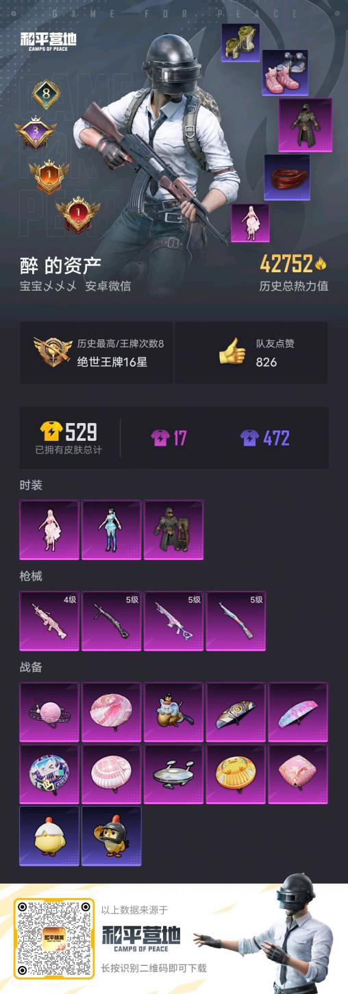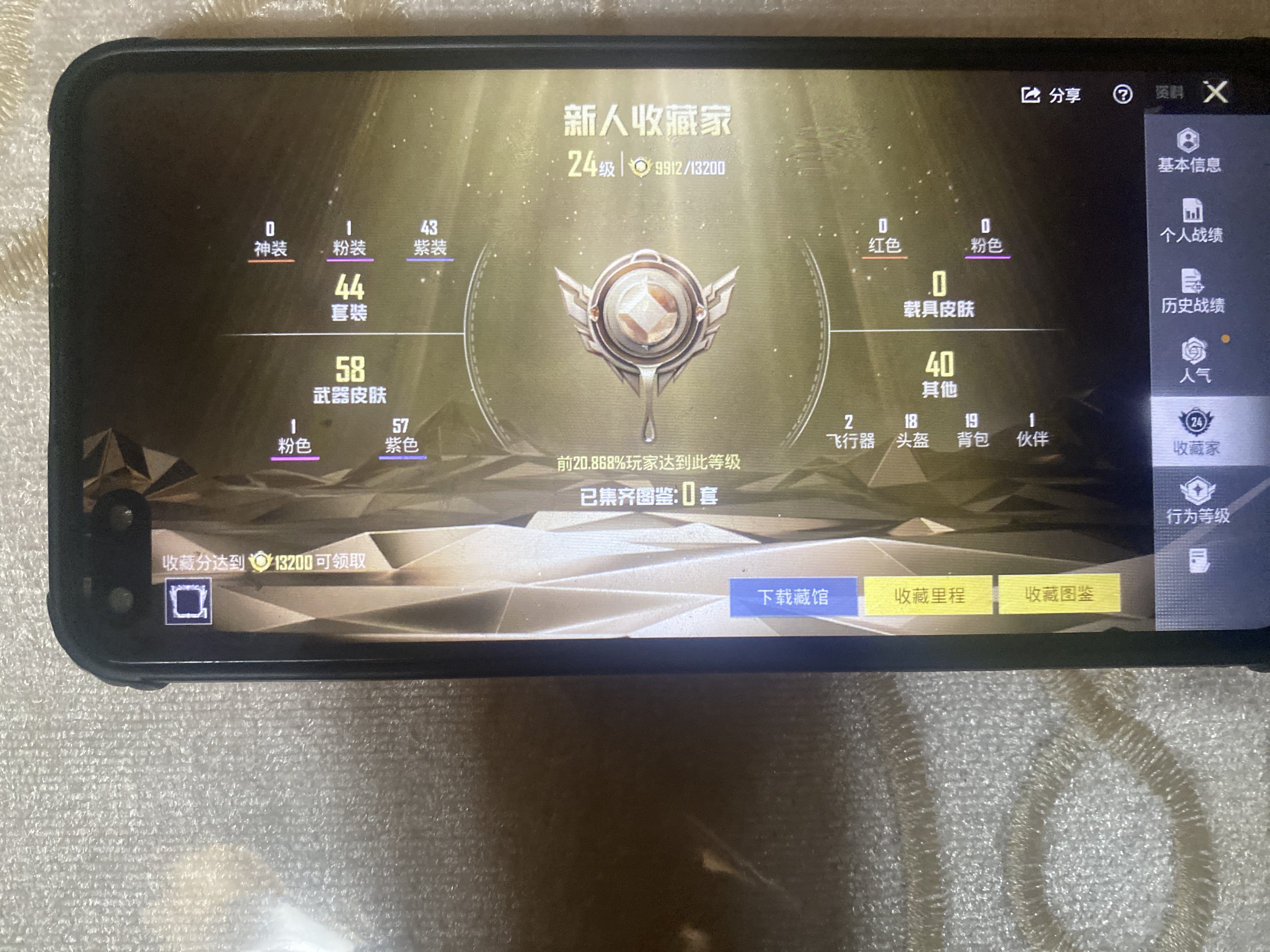 1神装-13粉装-8特效枪-1载具-3粉色飞行器-115821热力值-10王牌印记-263套装-343枪皮