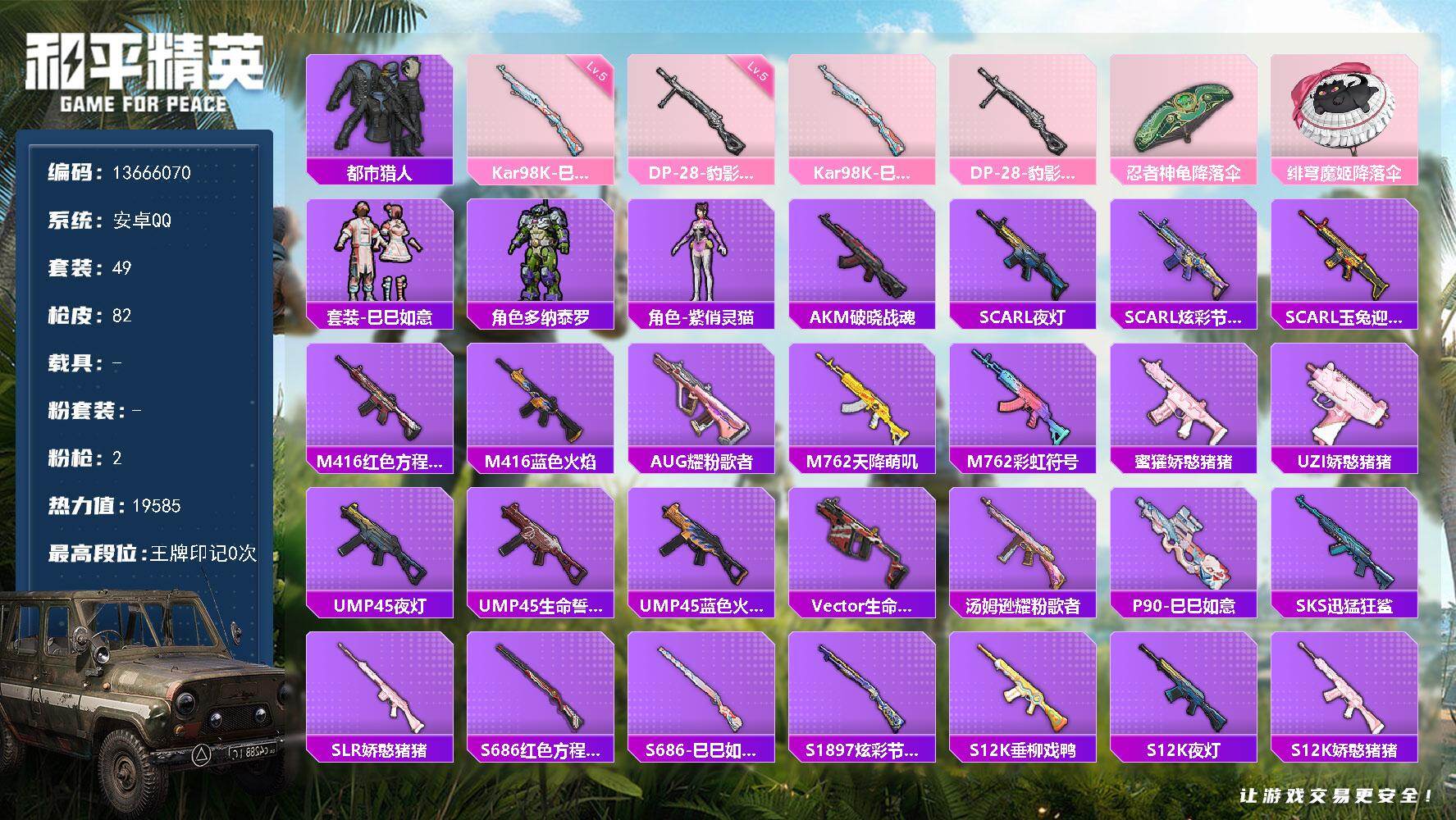 49套装/枪械2/装备85/战备52/热力值19585/五级Kar98K-巳巳
