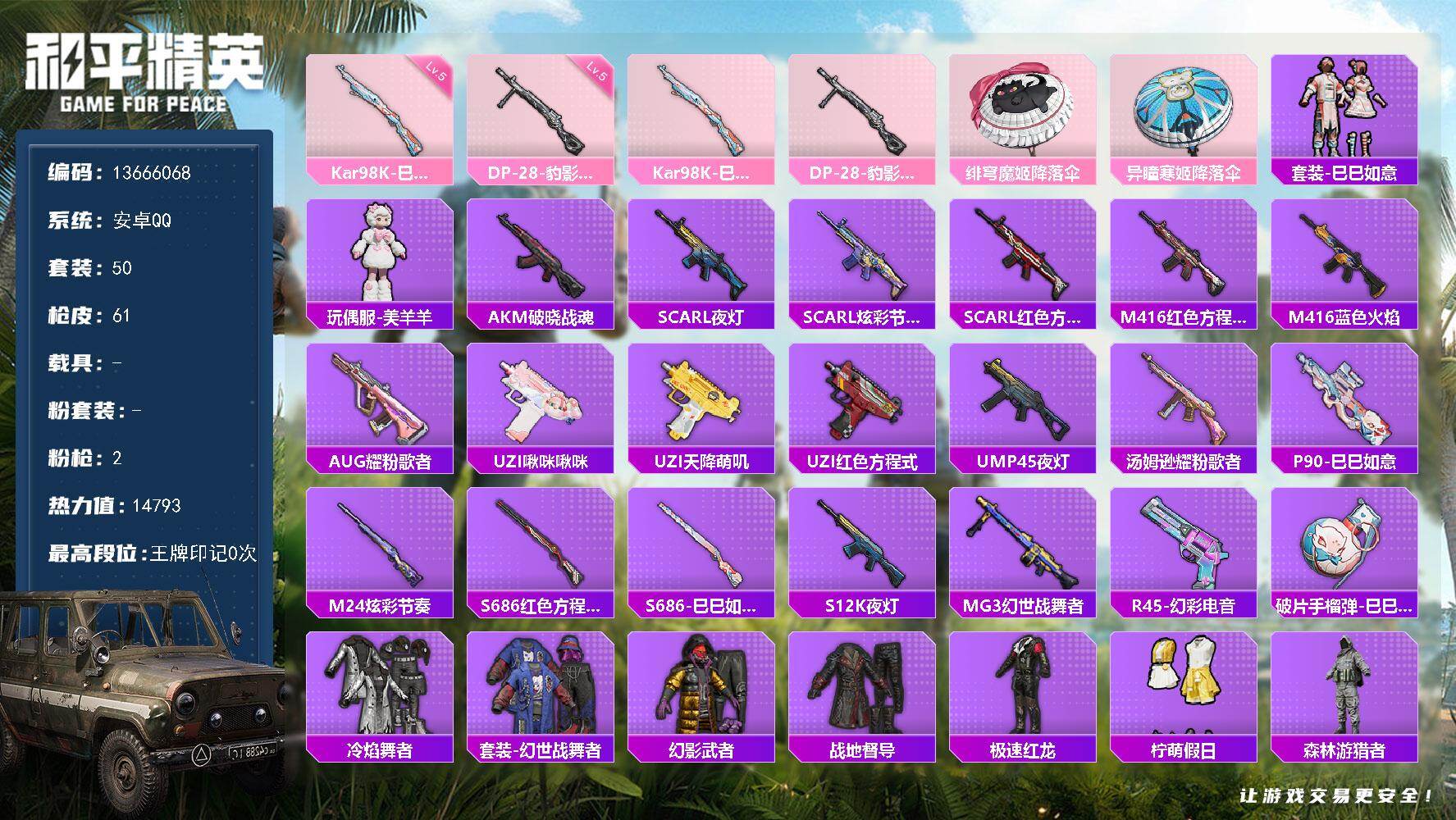 50套装/枪械2/装备63/战备36/热力值14793/五级Kar98K-巳巳