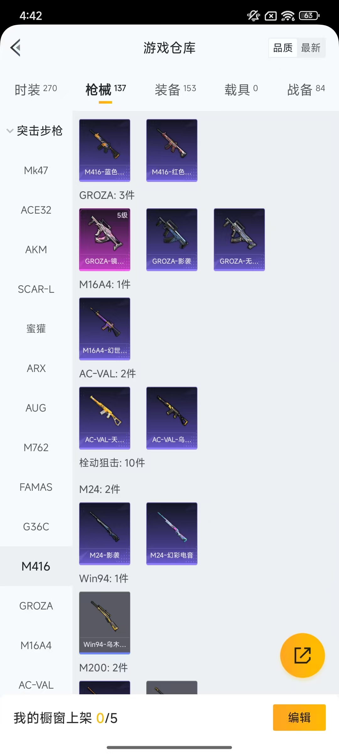 38套装/枪械2/装备59/战备38/王牌印记3/热力值11967/五级Kar