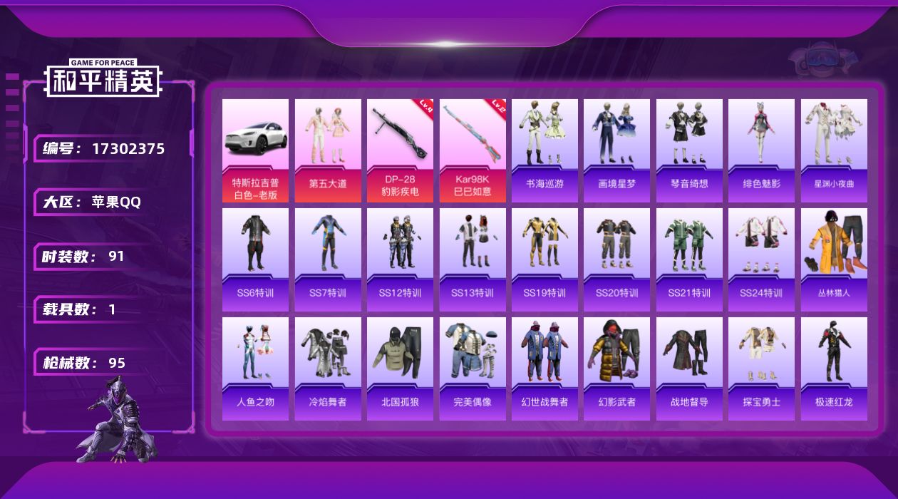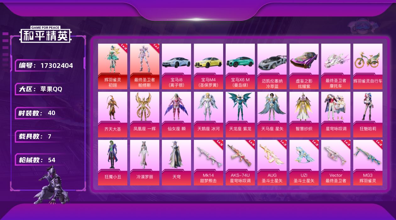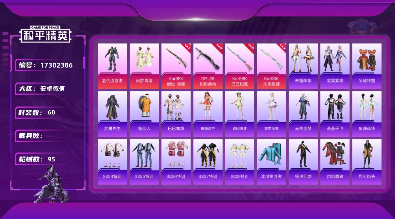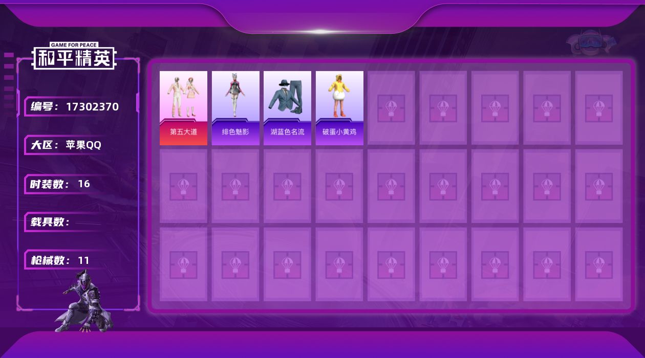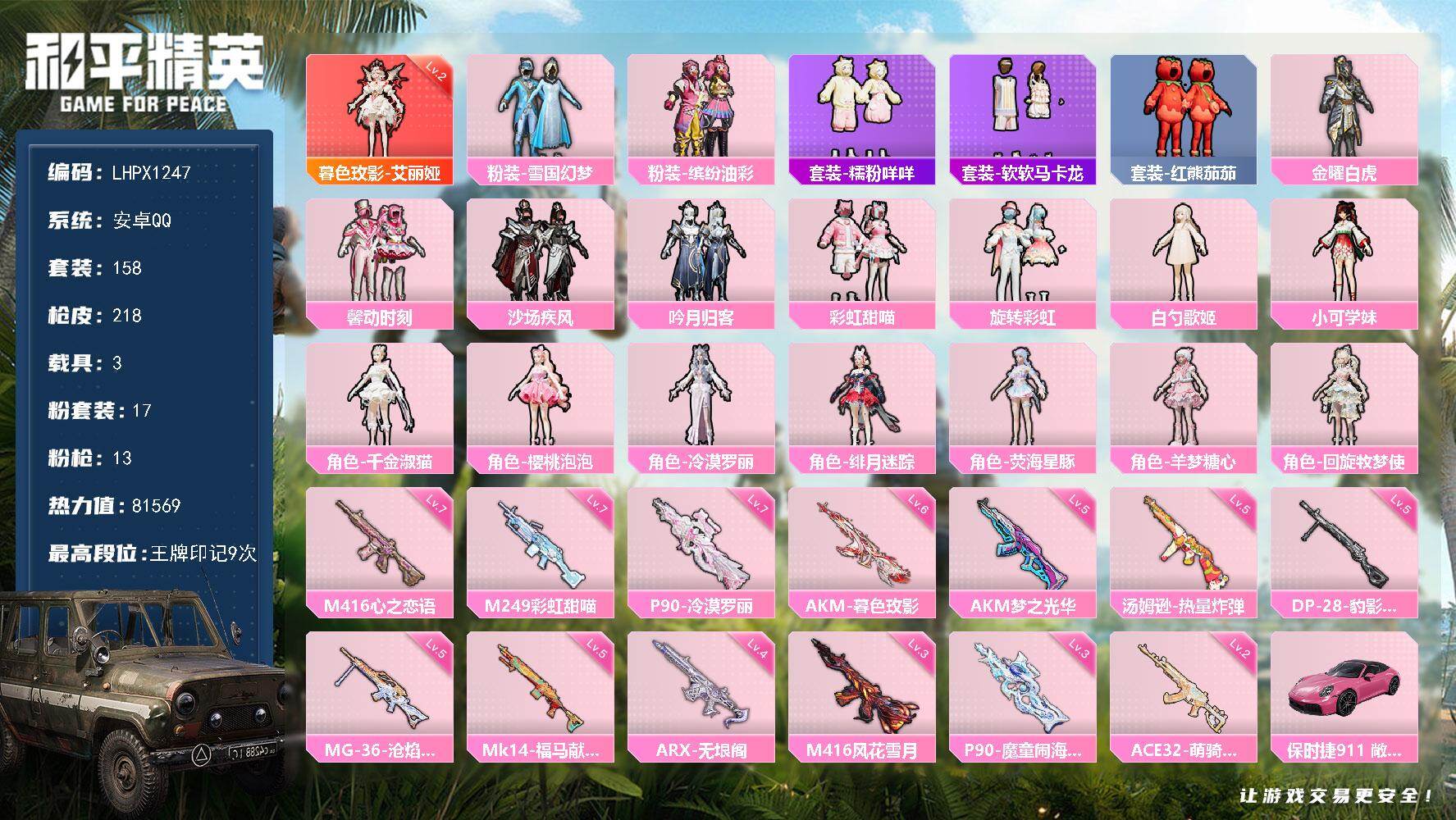 安卓 手Q-1神装-17粉装-13特效枪-3载具-7粉色