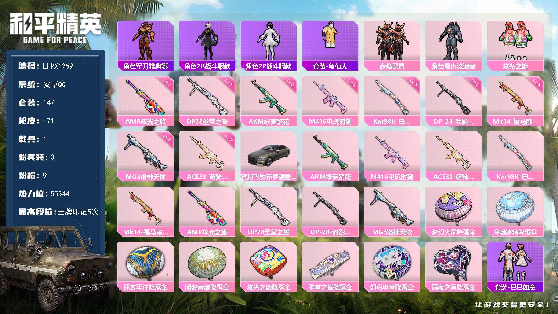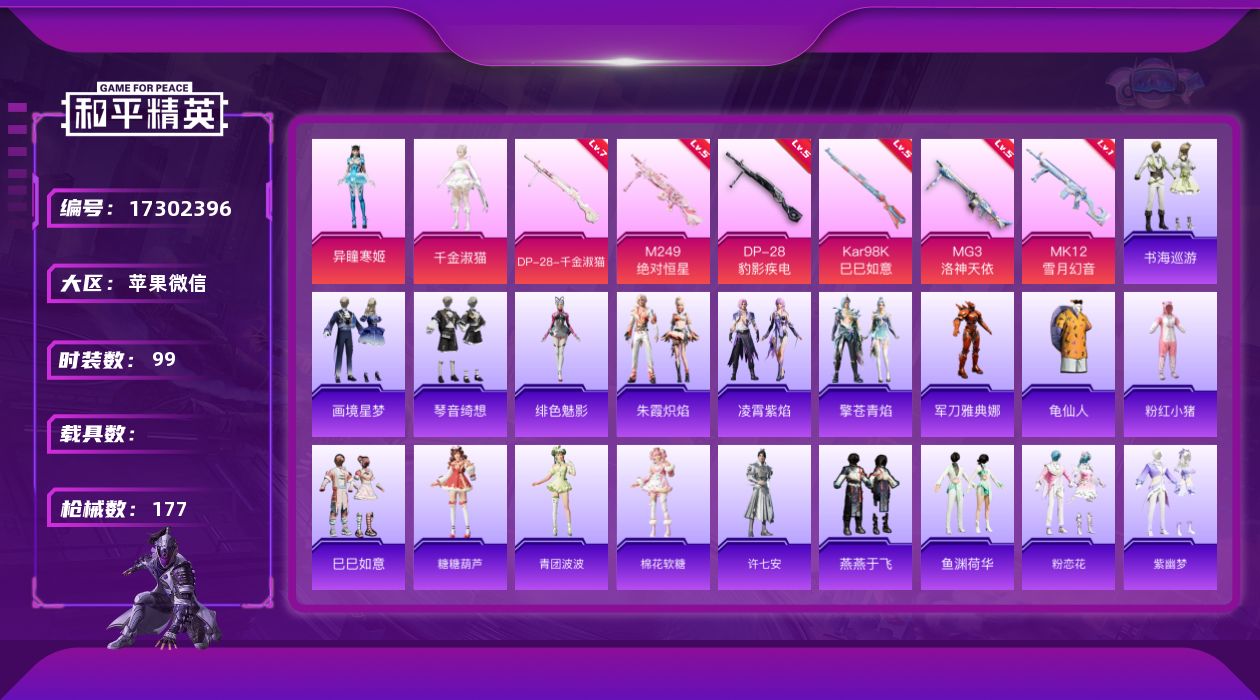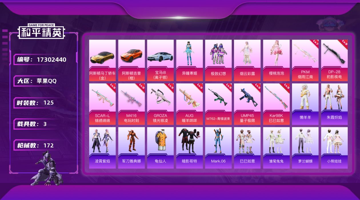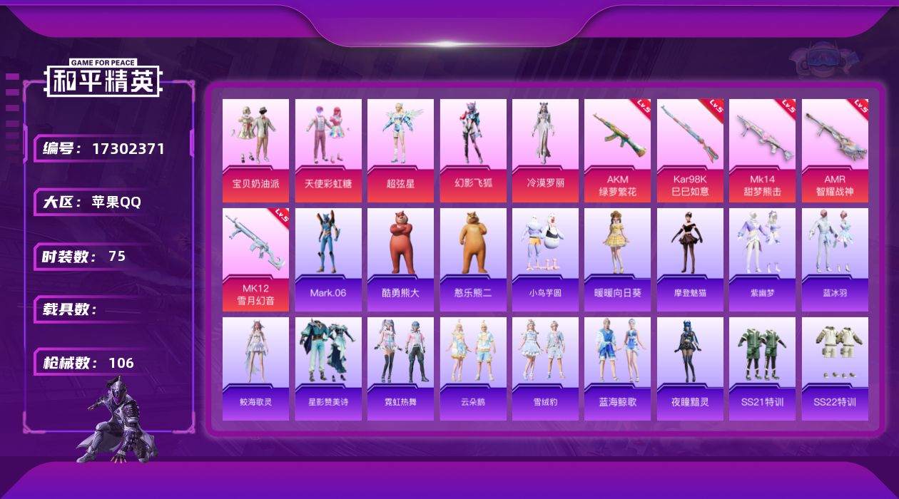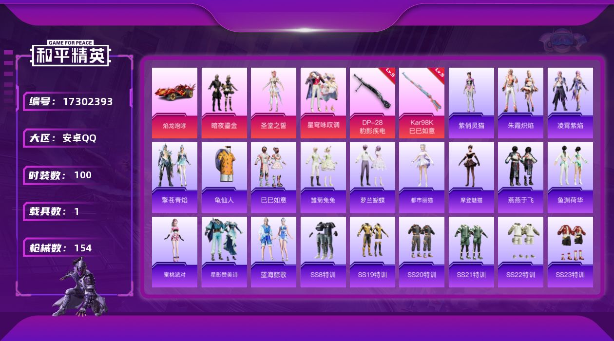 安卓 手Q-1神装-17粉装-13特效枪-3载具-7粉色