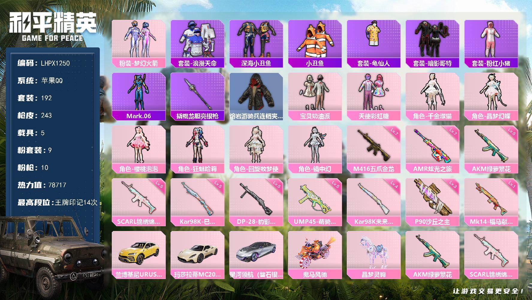 可二次实名【满级M4心之恋语7特效枪1粉装 秒换绑不用等】 苹果Q区-24145