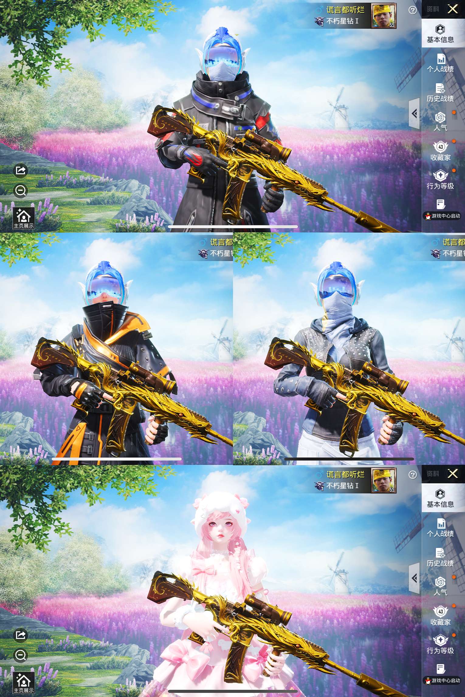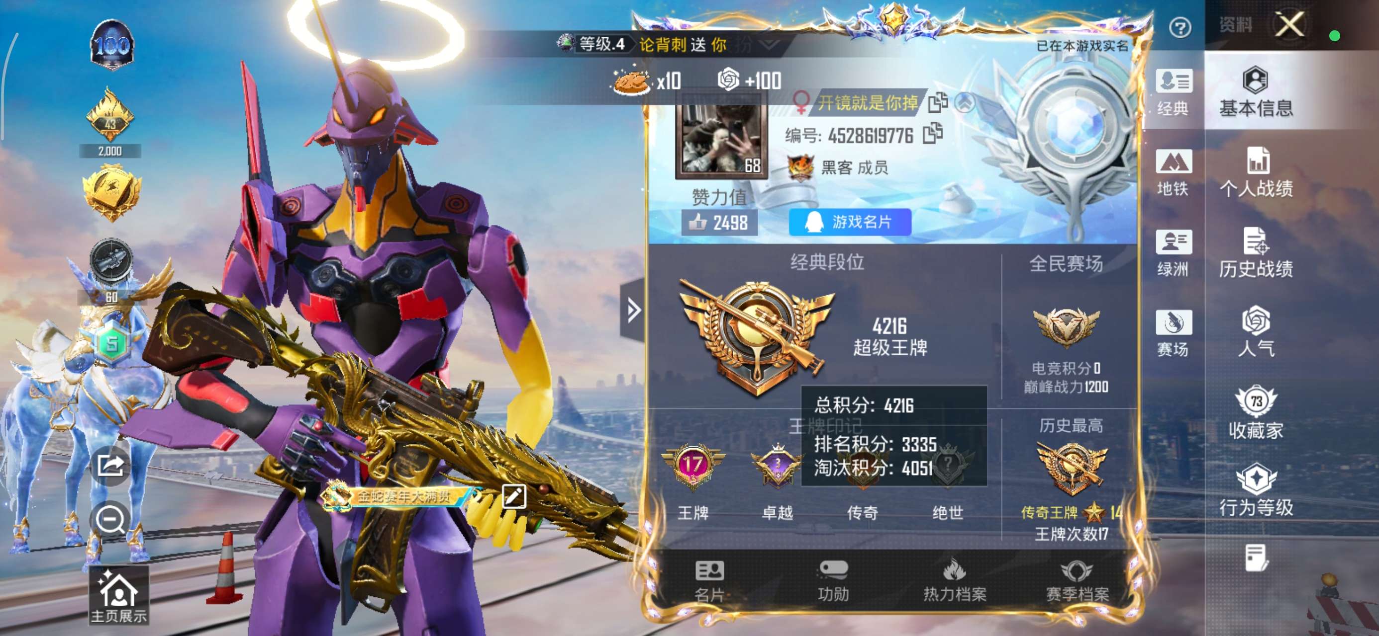 5个粉装一个巡查衣4把升级抢,15个王牌印记,游戏等级60,家园地铁全部解锁满级,收藏家等级71级