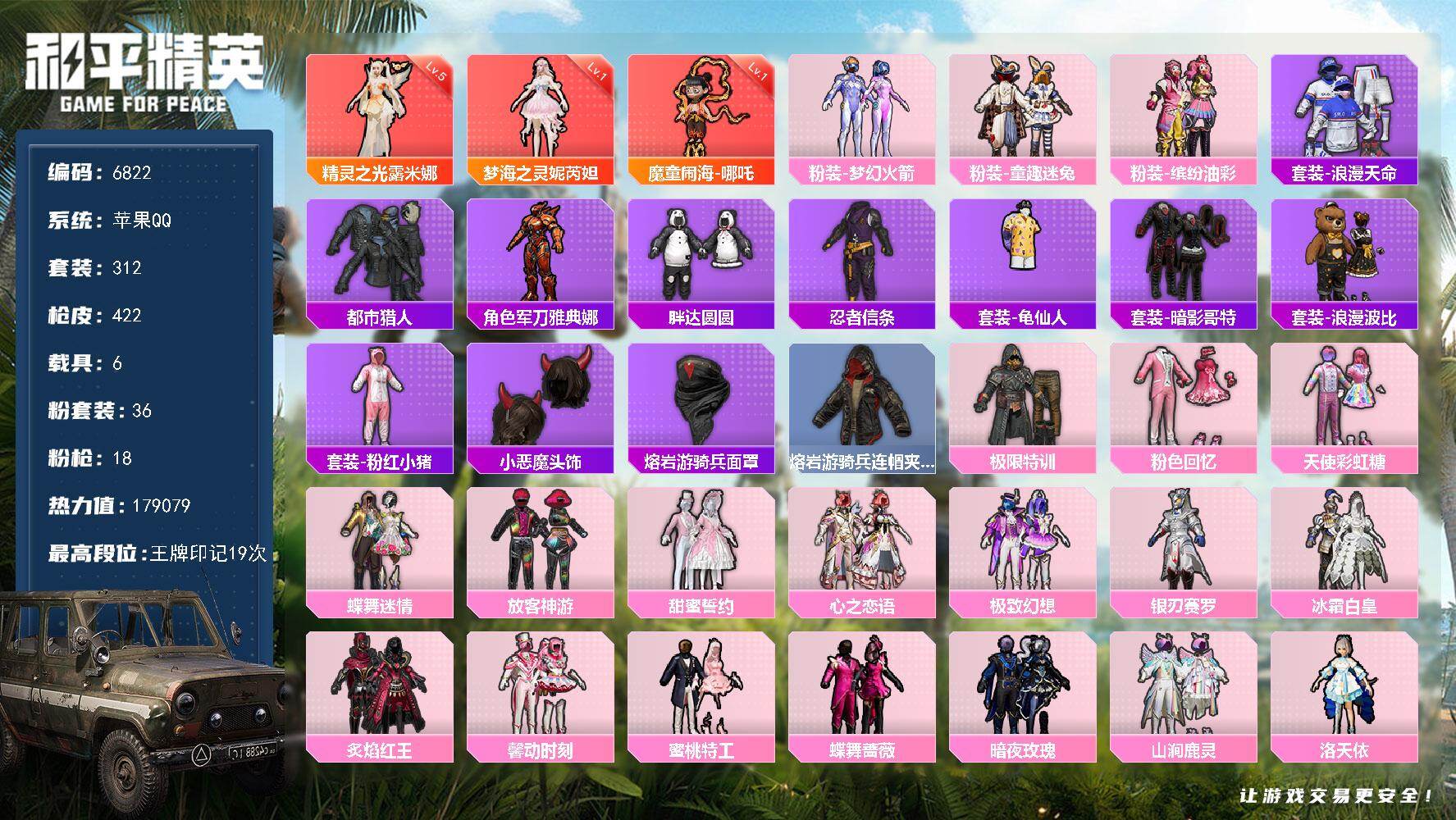【6822】36粉装-18特效枪-6载具-179079热力值-19印记-312
