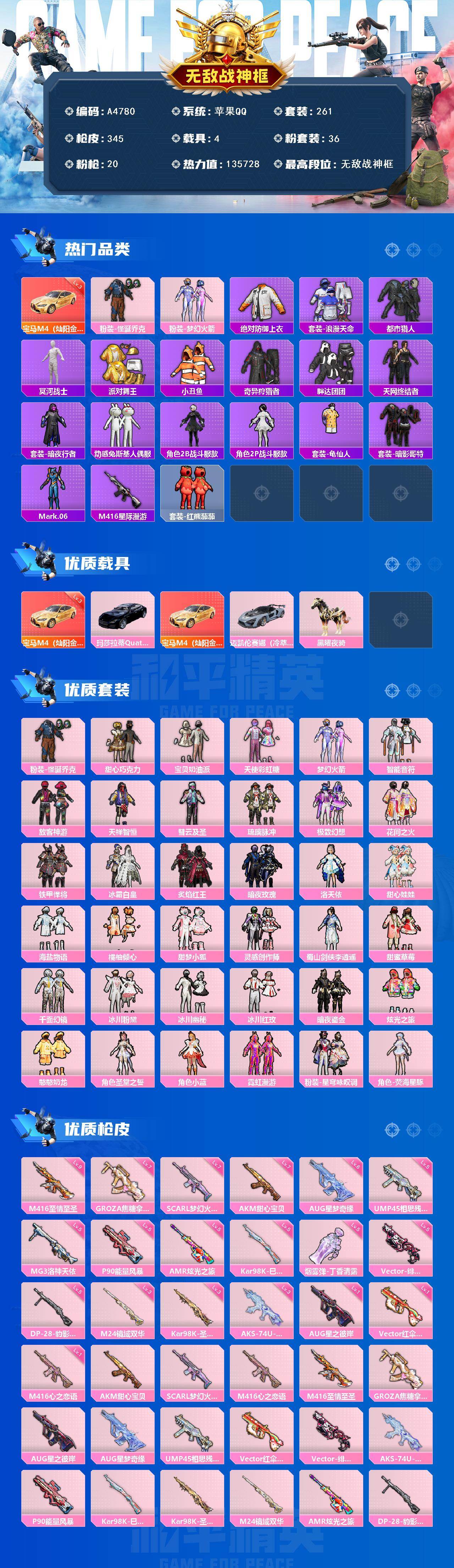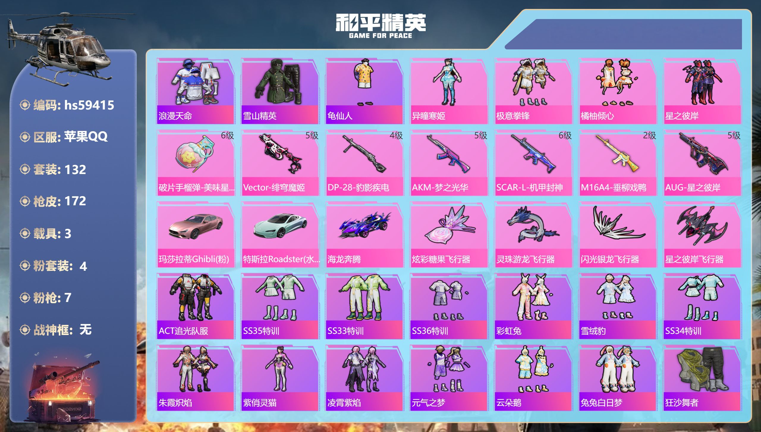 hs59415 苹果手Q-11王牌印记-4粉装-7特效枪-3载具-58720热力值-132套装-17