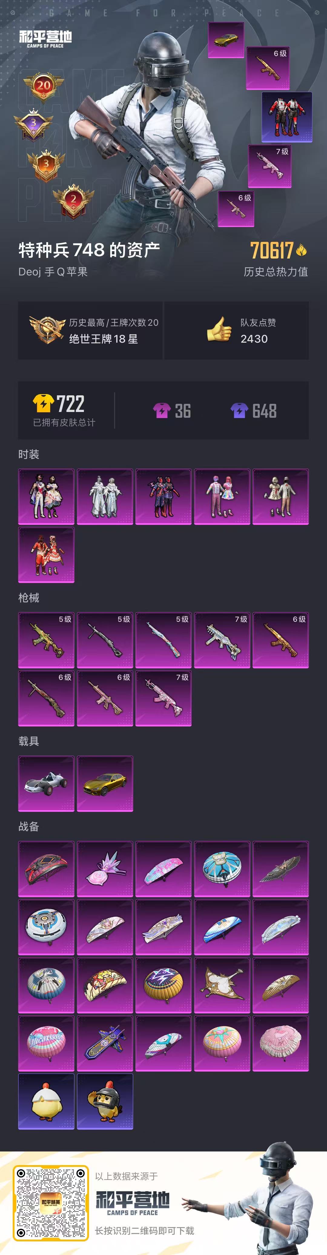 hs59299 苹果手Q-7王牌印记-3粉装-8特效枪-32444热力值-64套装-109枪皮-2卓