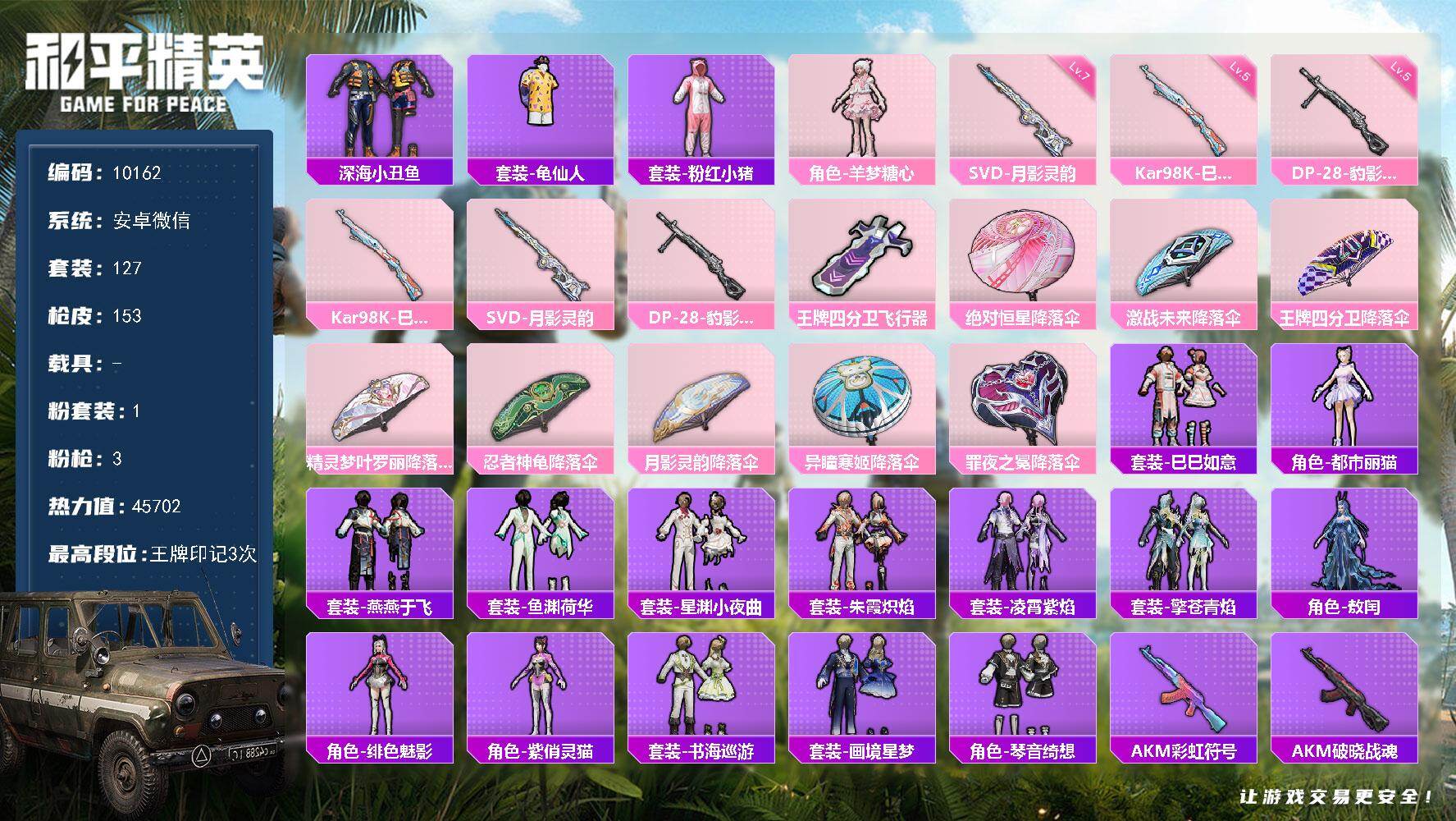 安卓 微信-1粉装-3特效枪-0载具-2粉色飞行器-45702热力值-3王牌印