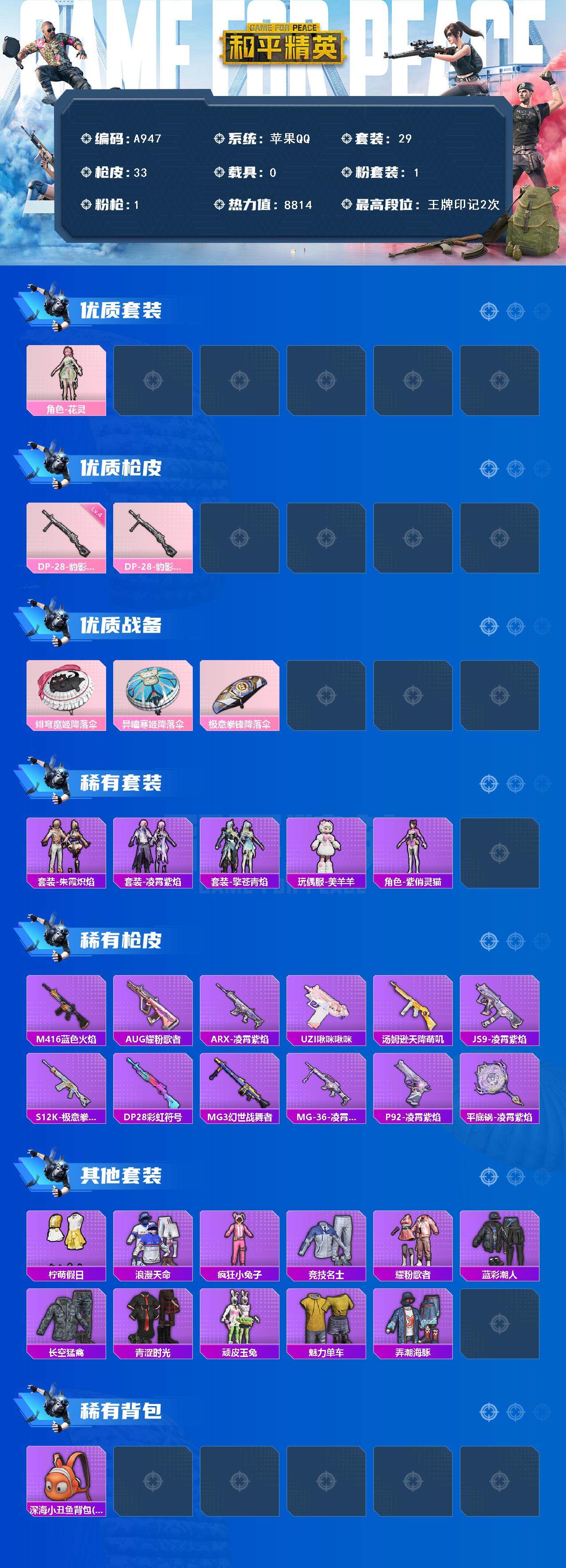 安卓 手Q-8粉装-3特效枪-4载具-热力值-0印记-44套装-55枪皮