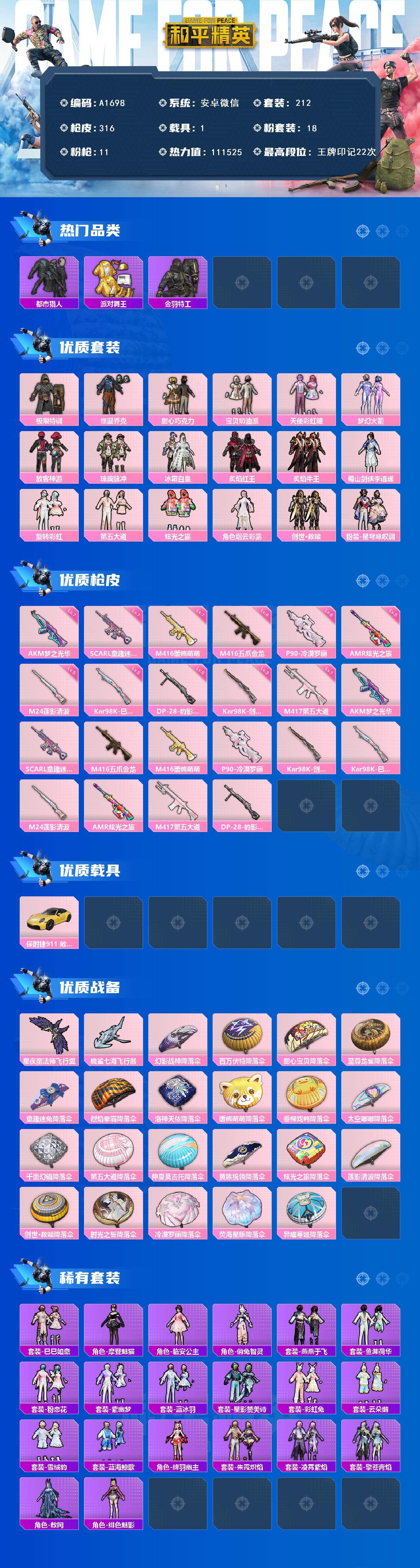 安卓 手Q-7粉装-3特效枪-1载具-热力值-1印记-75套装-116枪皮