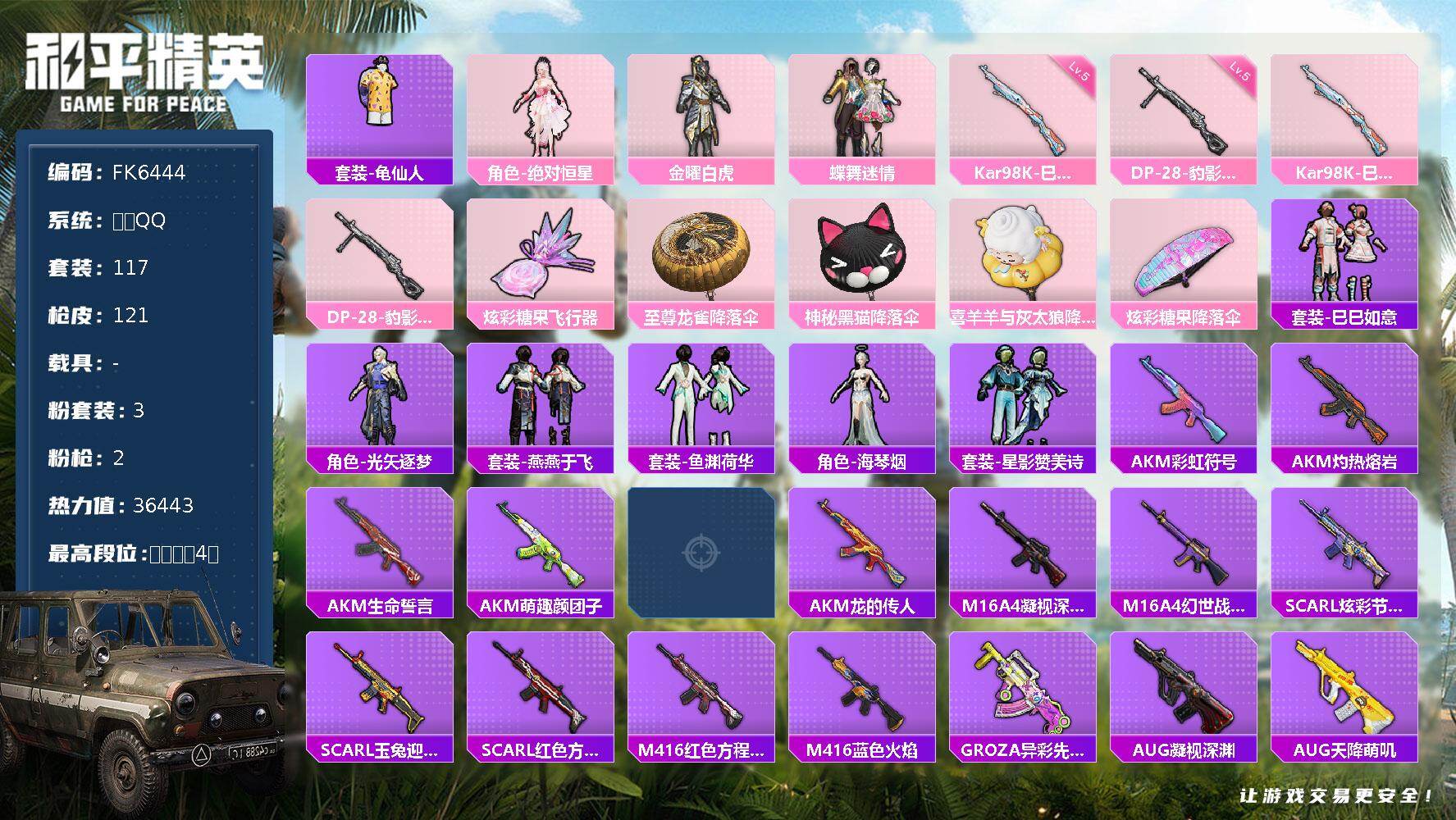 【FK6444】117套装/枪械2/装备123/战备86/王牌印记4/热力值3