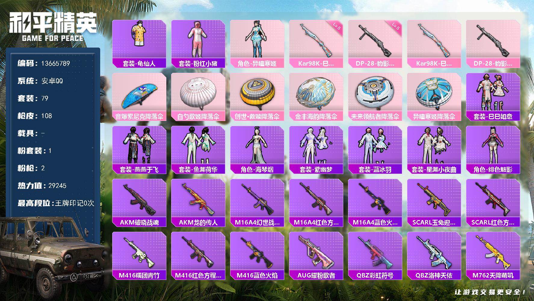 79套装/枪械2/装备99/战备78/热力值29245/五级Kar98K-巳巳
