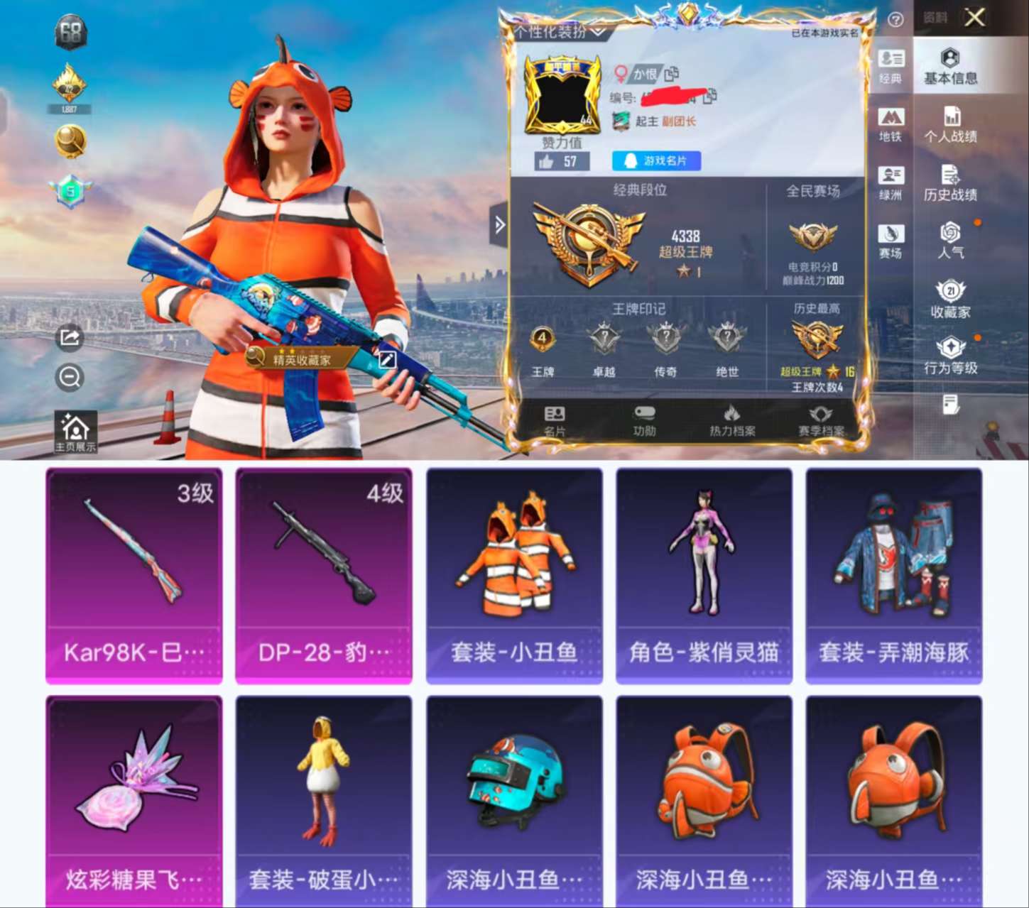 a4220/苹果v/热力值:98352,10粉装,12粉枪,2载具,17粉色战备,239套装,29