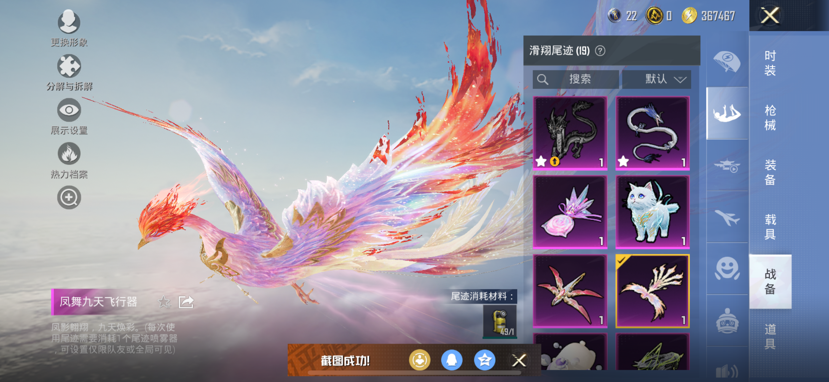 苹果 手Q-1神装-7粉装-6特效枪-2载具-3粉色飞行器-88913热力值-