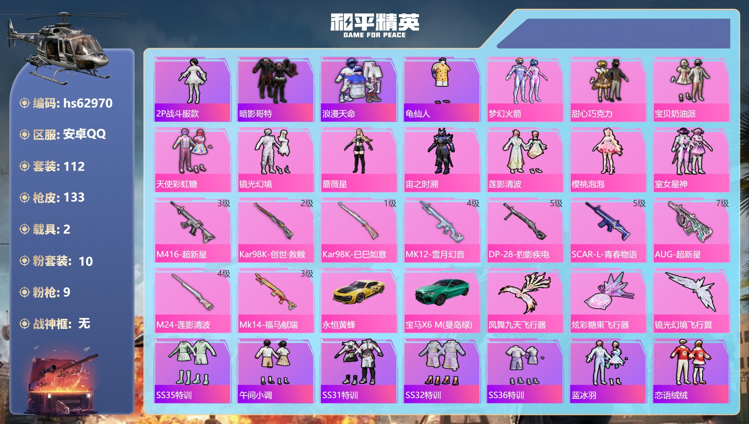 hs62970 安卓手Q-8王牌印记-10粉装-9特效枪-2载具-49586热力值-112套装-13