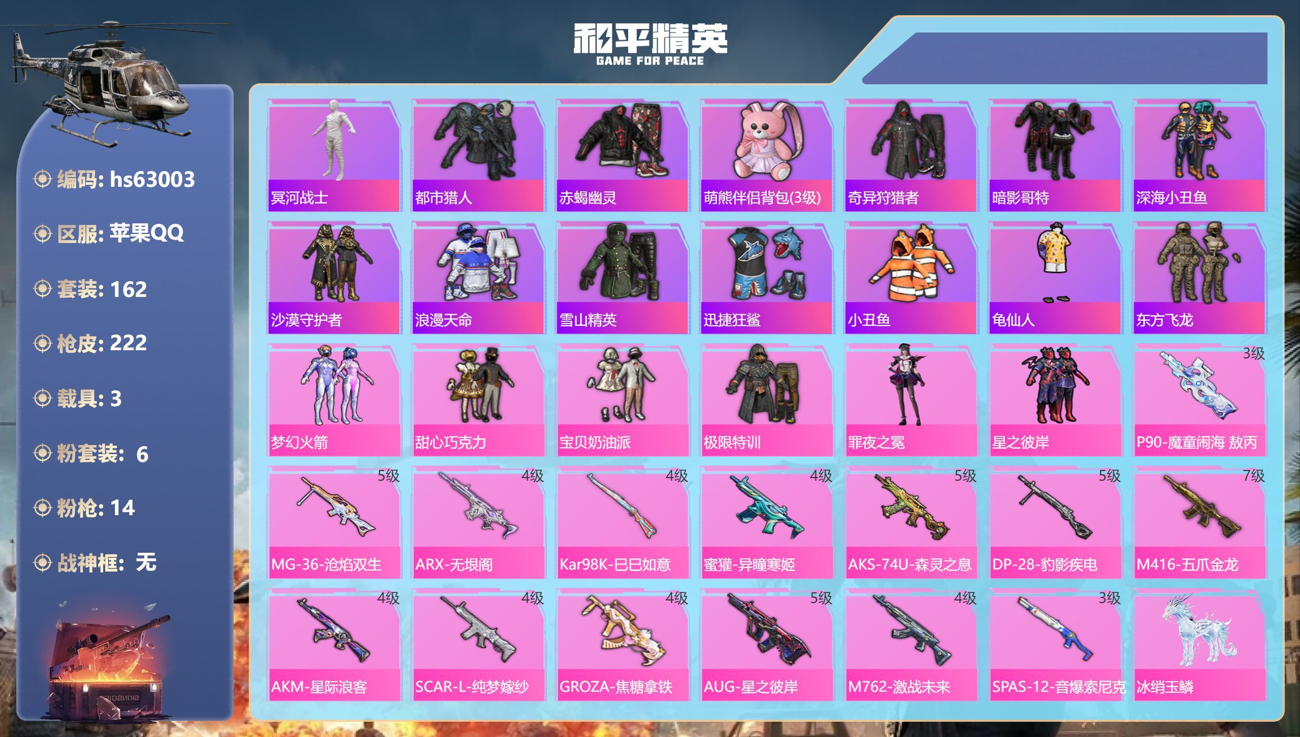 hs63003 苹果手Q-14王牌印记-6粉装-14特效枪-3载具-72913热力值-162套装-2