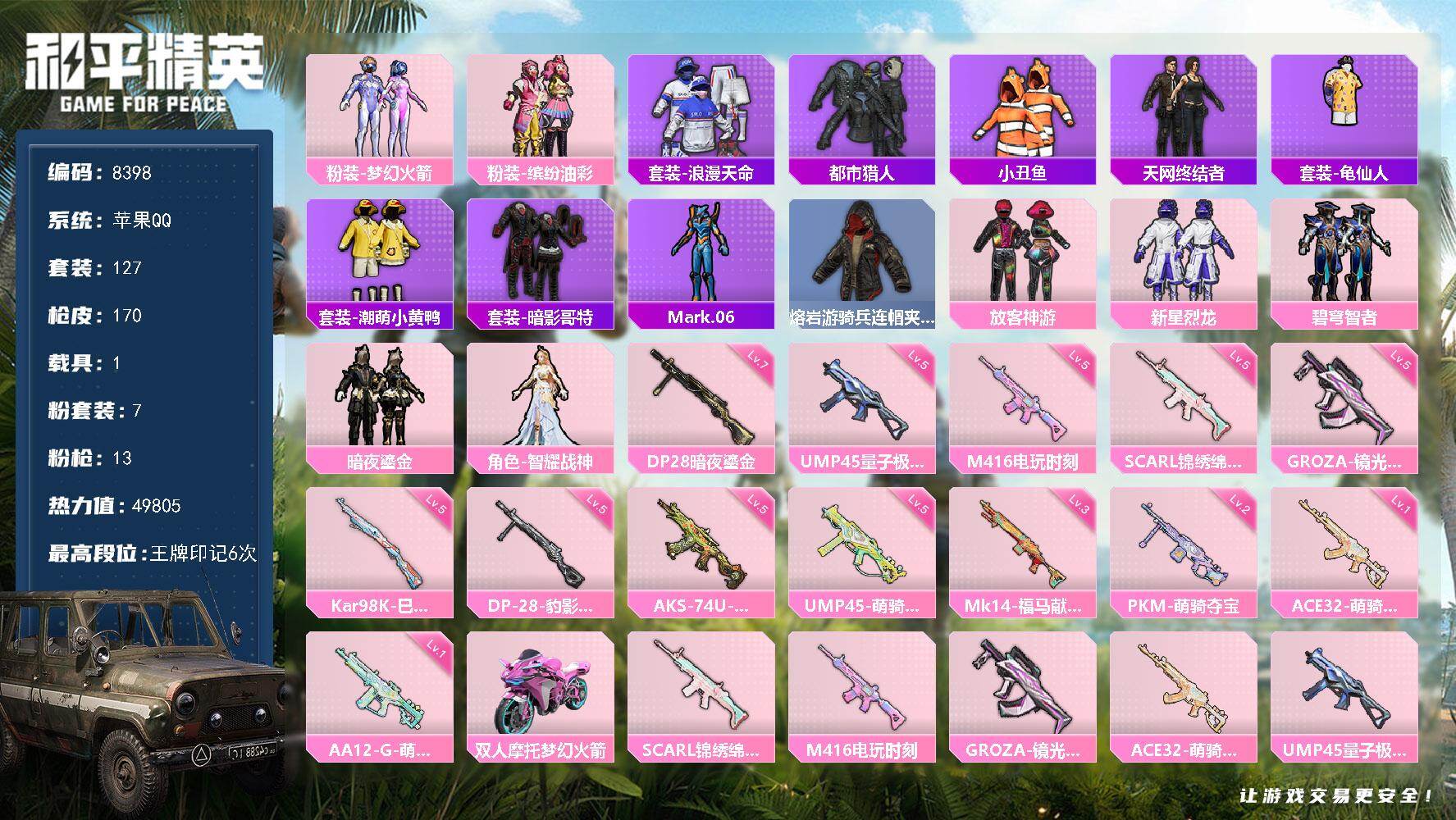 hs63006 苹果手Q-9王牌印记-5粉装-7特效枪-1载具-39991热力值-91套装-127枪