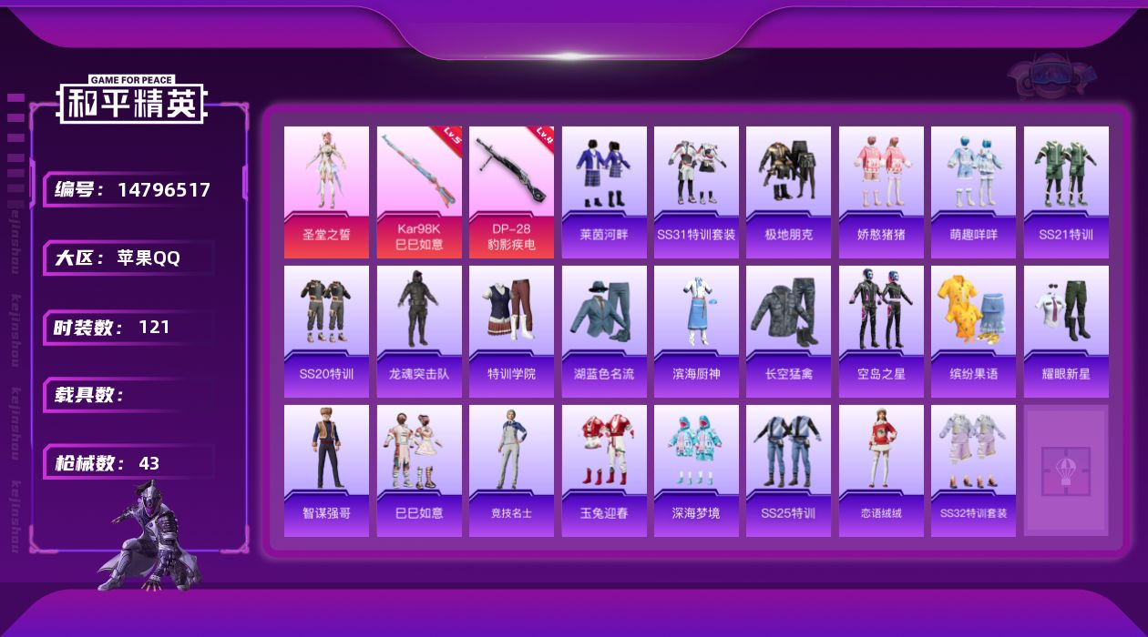 十粉装,5特效枪,蓝螳螂,账号有验证,可以送包赔
