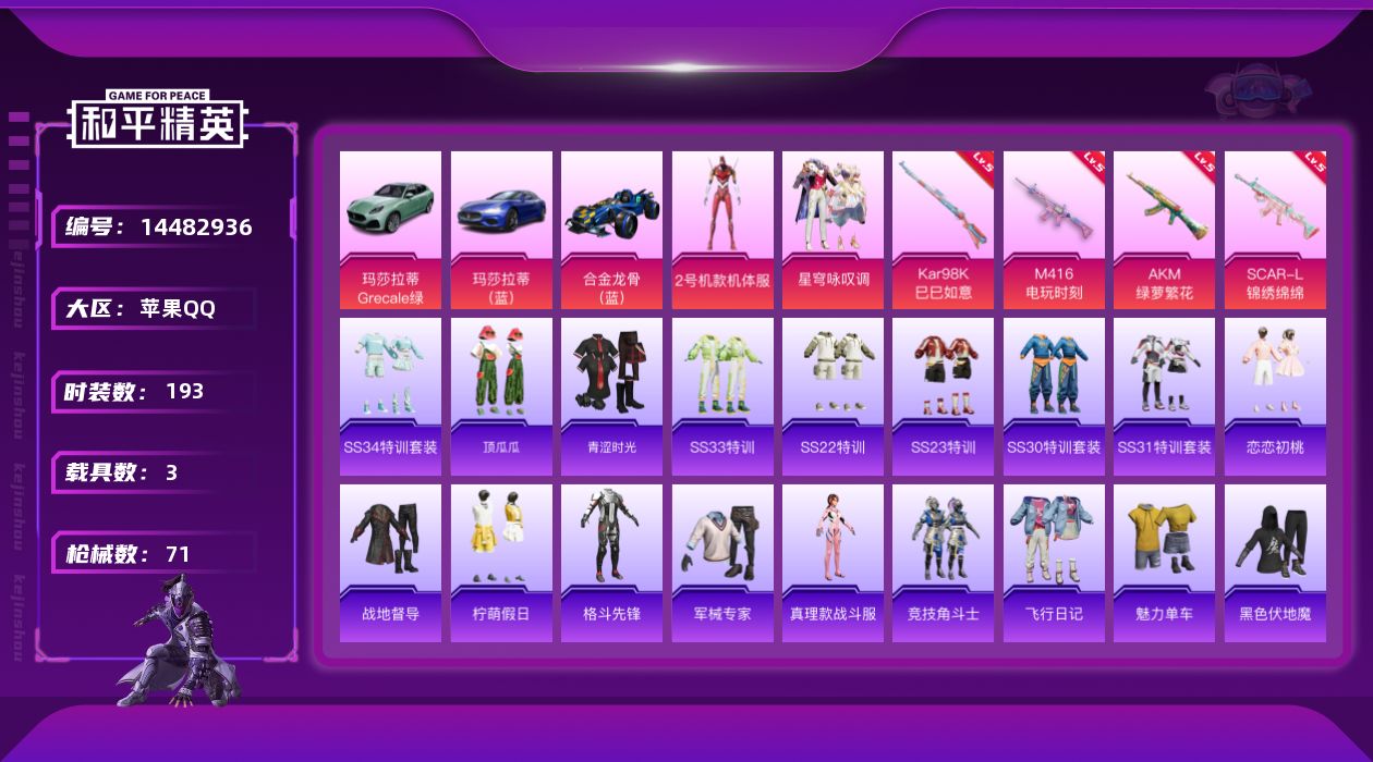【8150】1神装-11粉装-6特效枪-2载具-9粉色飞行器-88078热力值