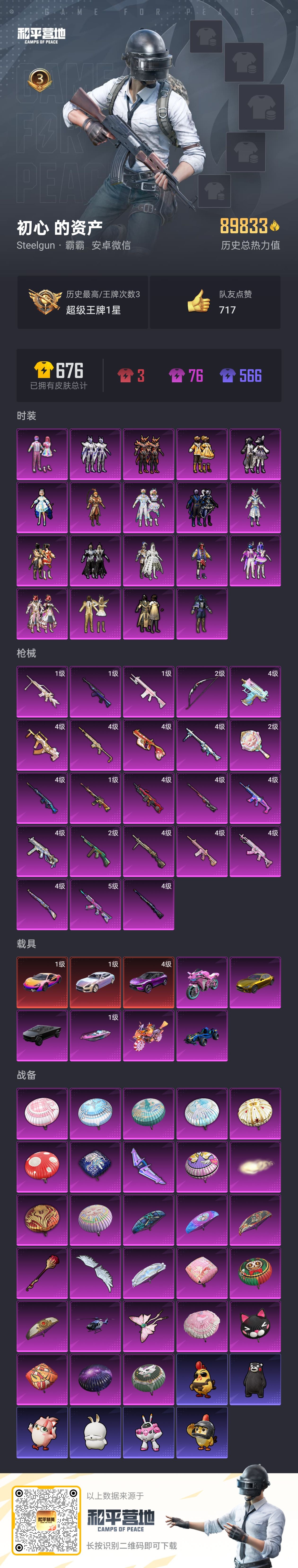 【6886】12粉装-11特效枪-2载具-47889热力值-4印记-84套装-