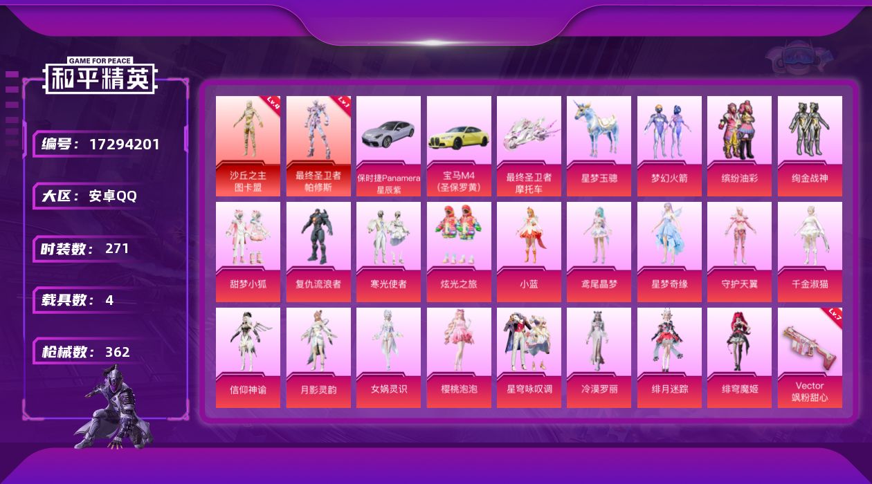 安卓 手Q-2神装-21粉装-21特效枪-4载具-17粉色飞