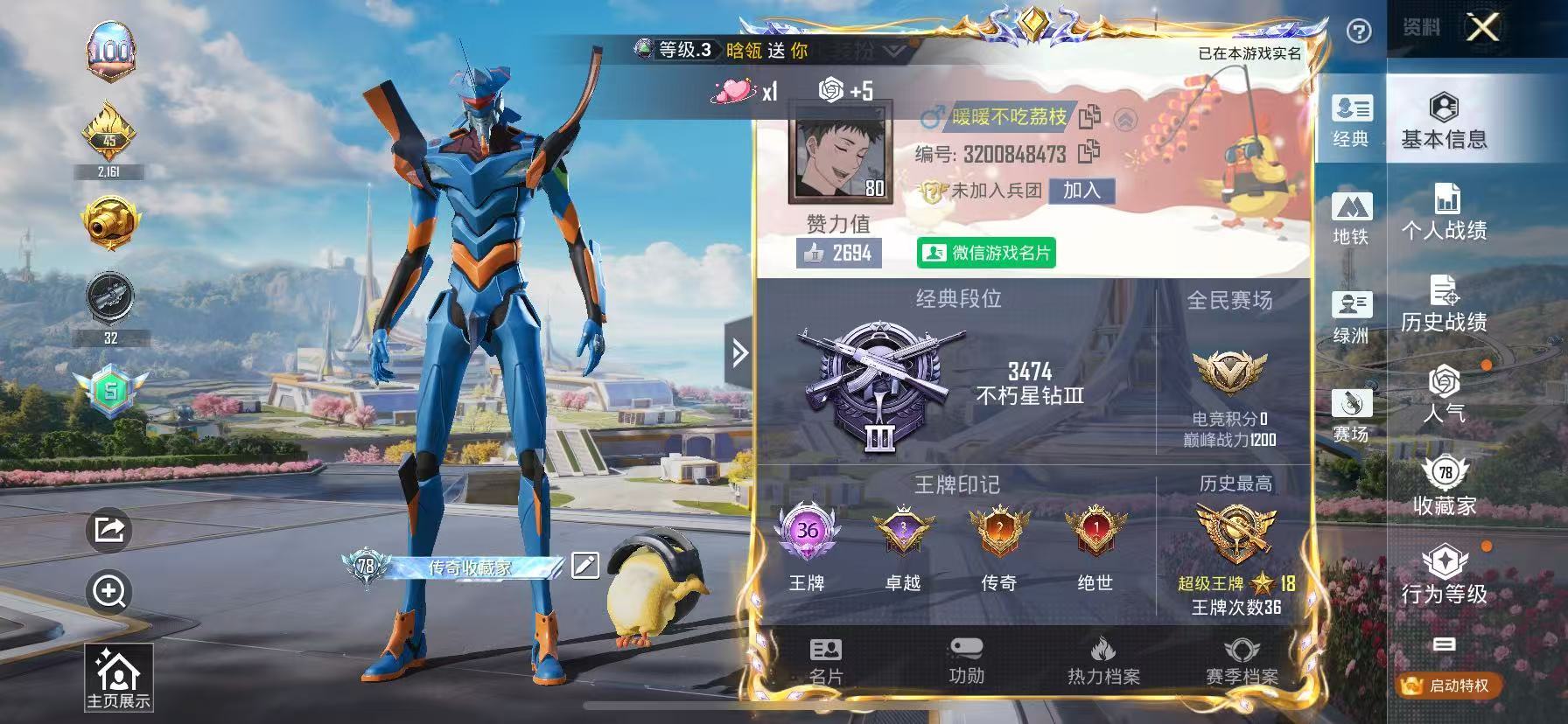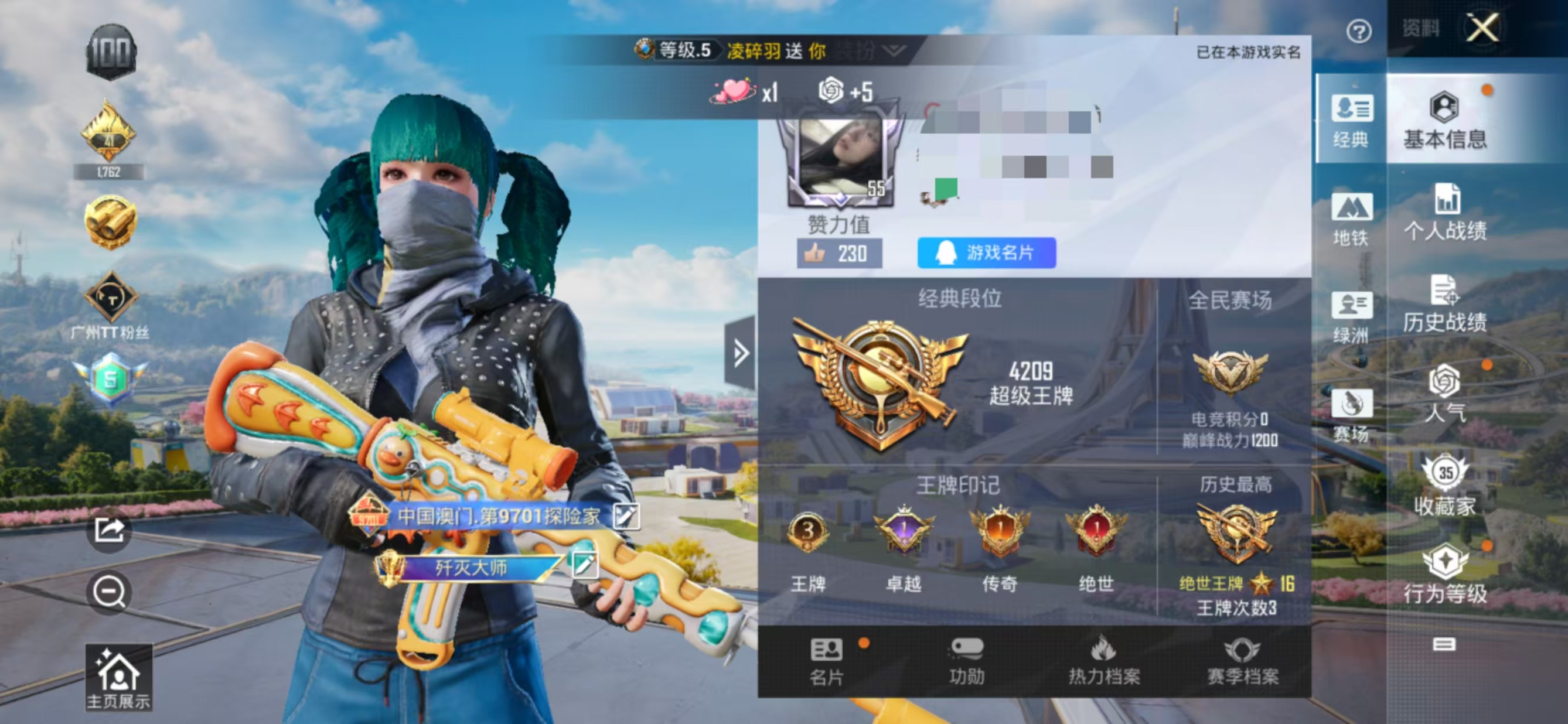 实名: 可修改 时装数: 150 载具数: 4 枪械数: 189 战备数: 1