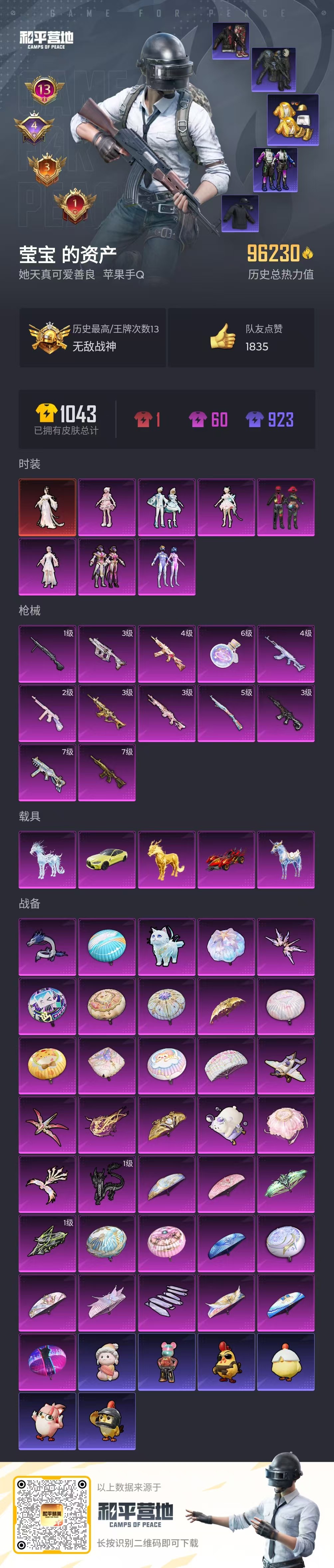 热力值:48069,1神装,14粉装,9粉枪,8载具,12