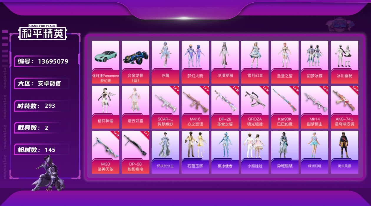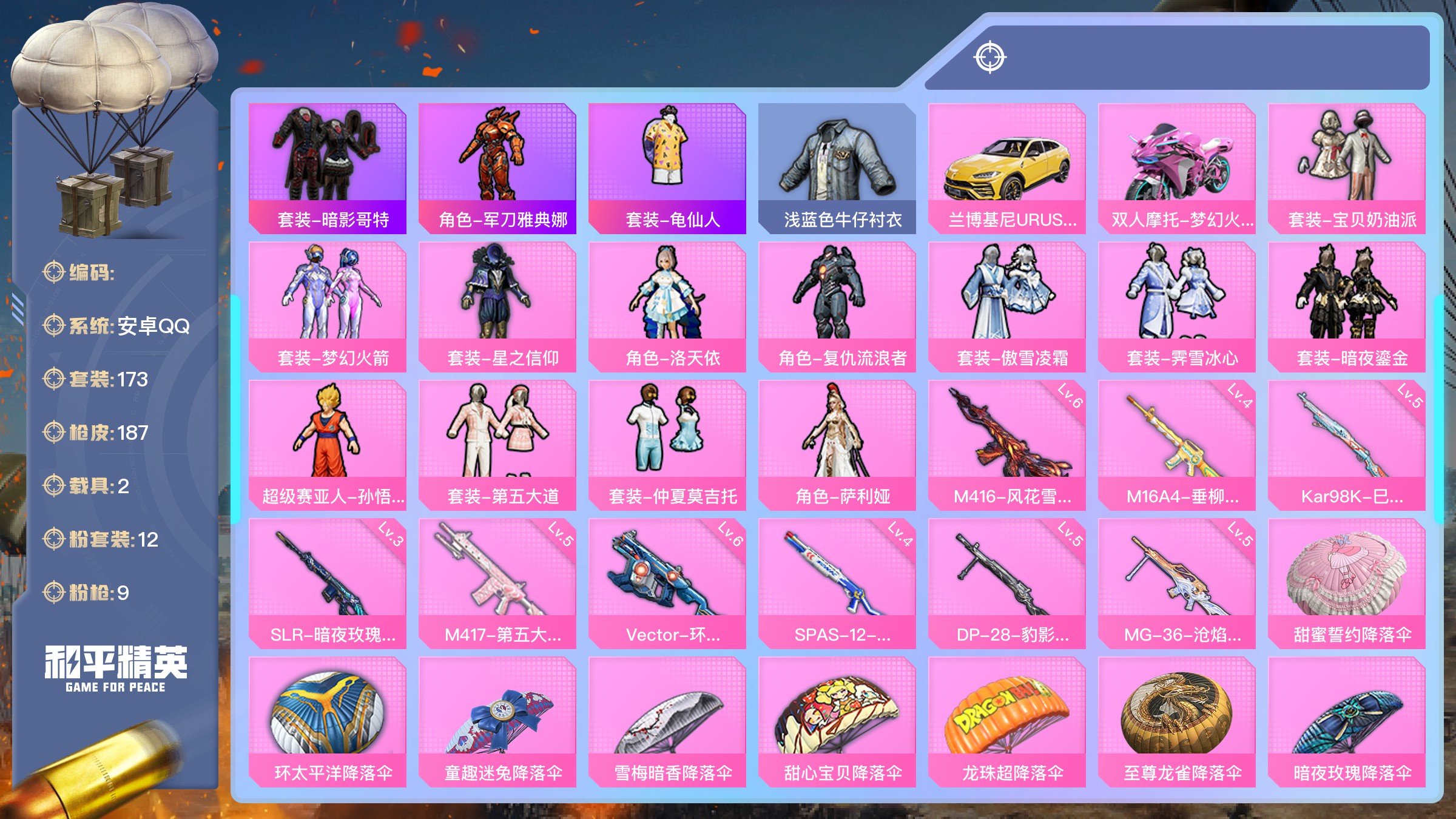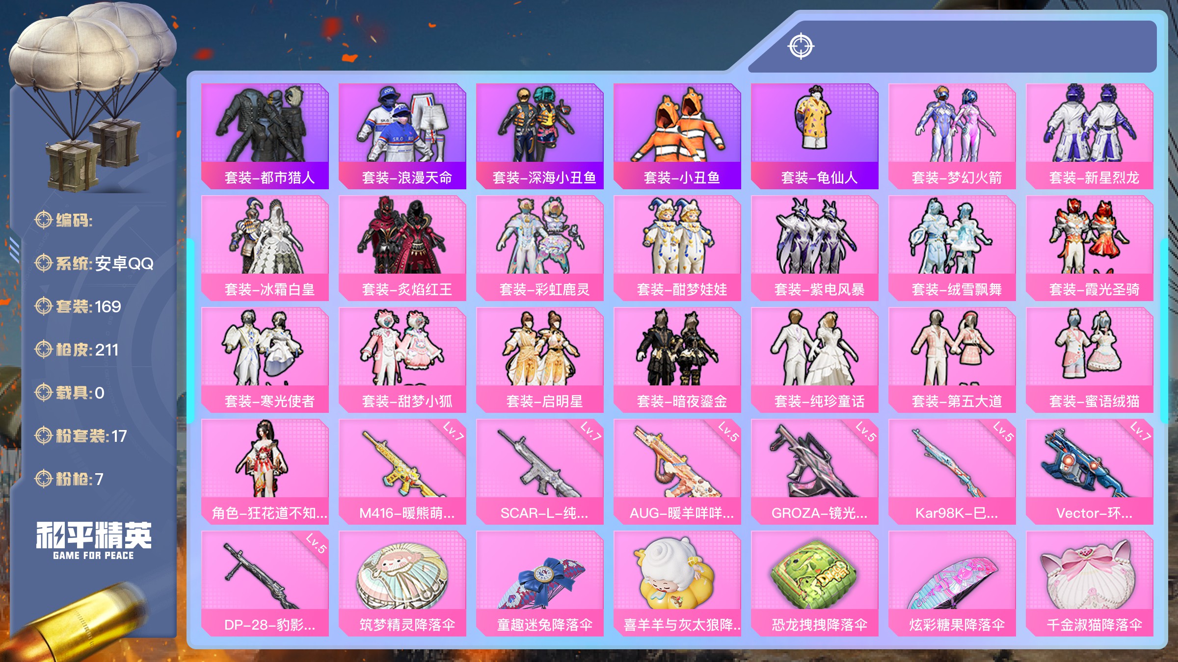 安卓Q-3载具5粉装1特效枪4热门71套装104枪皮 34270热力值 4印记 历史超级王牌13星