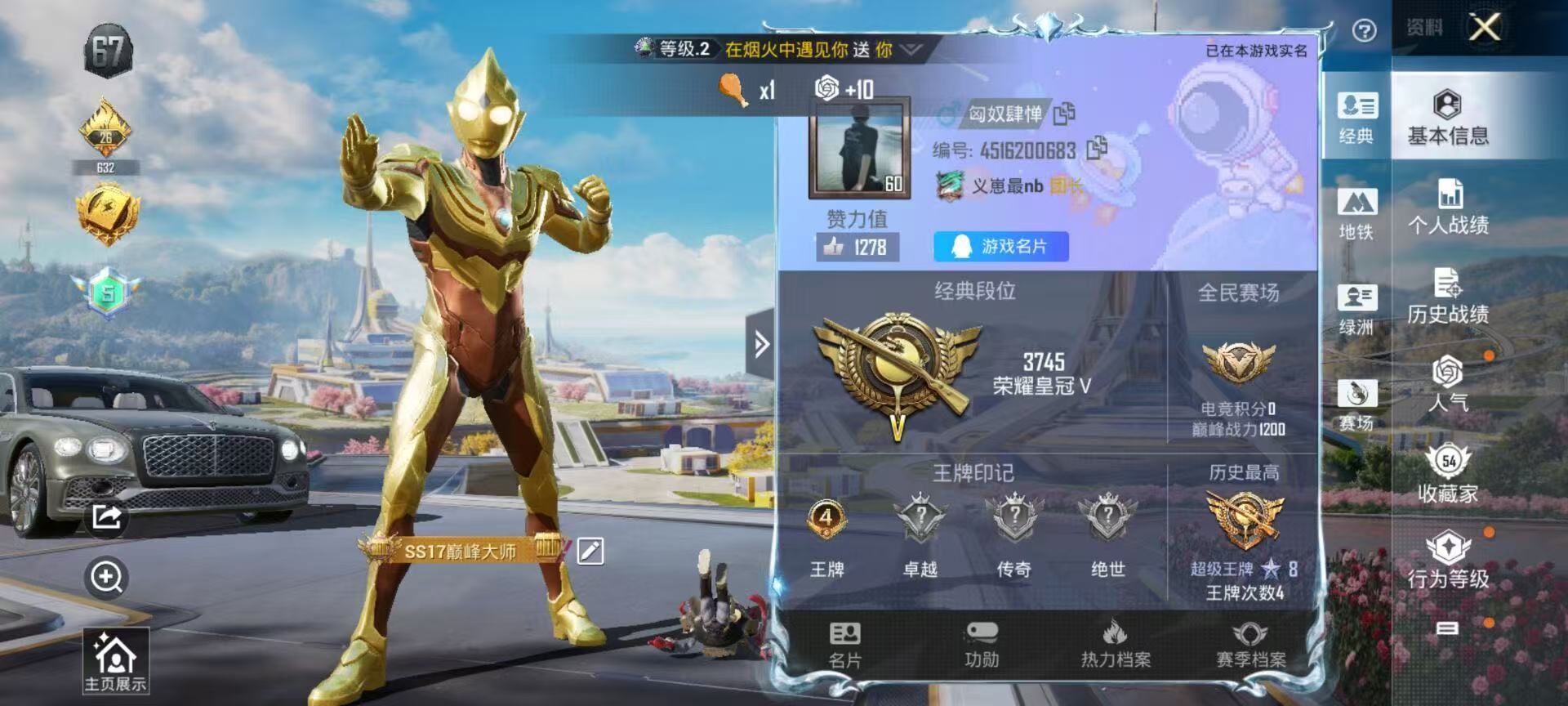 金色的轿车皮肤本人不玩了,游戏内砸了近五个W,低价出售了