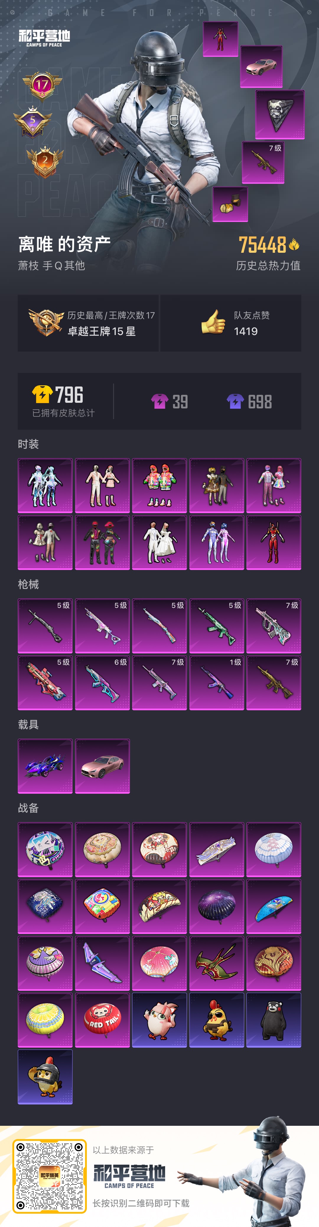 热力值:98886,3神装,19粉装,14粉枪,1载具,3