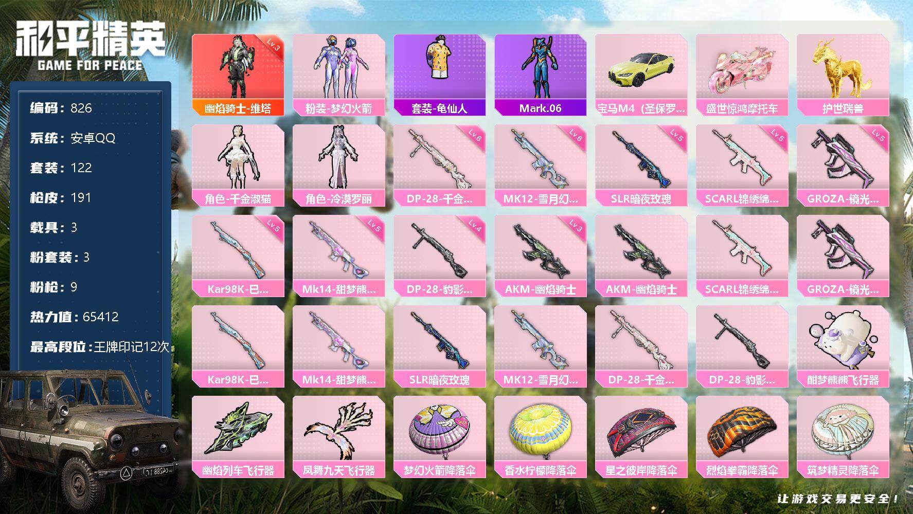 【826】【商品标题】:安卓 手Q-1神装-3粉装-9特效枪-3载具-3粉色飞