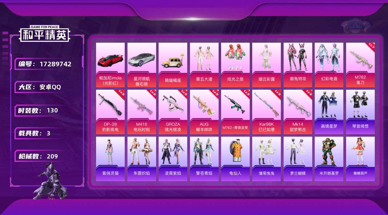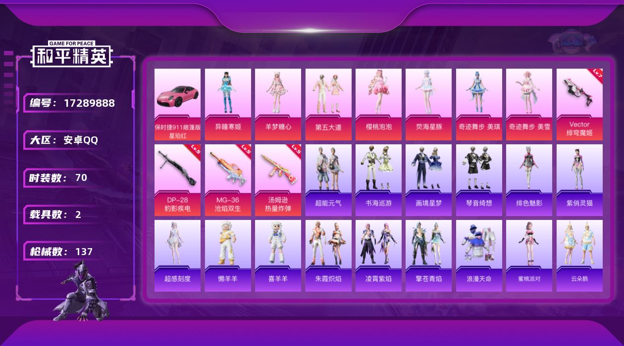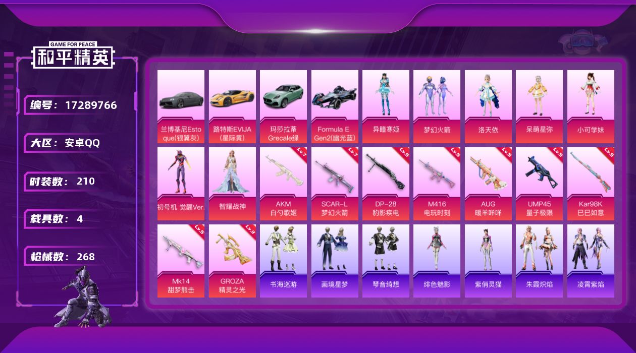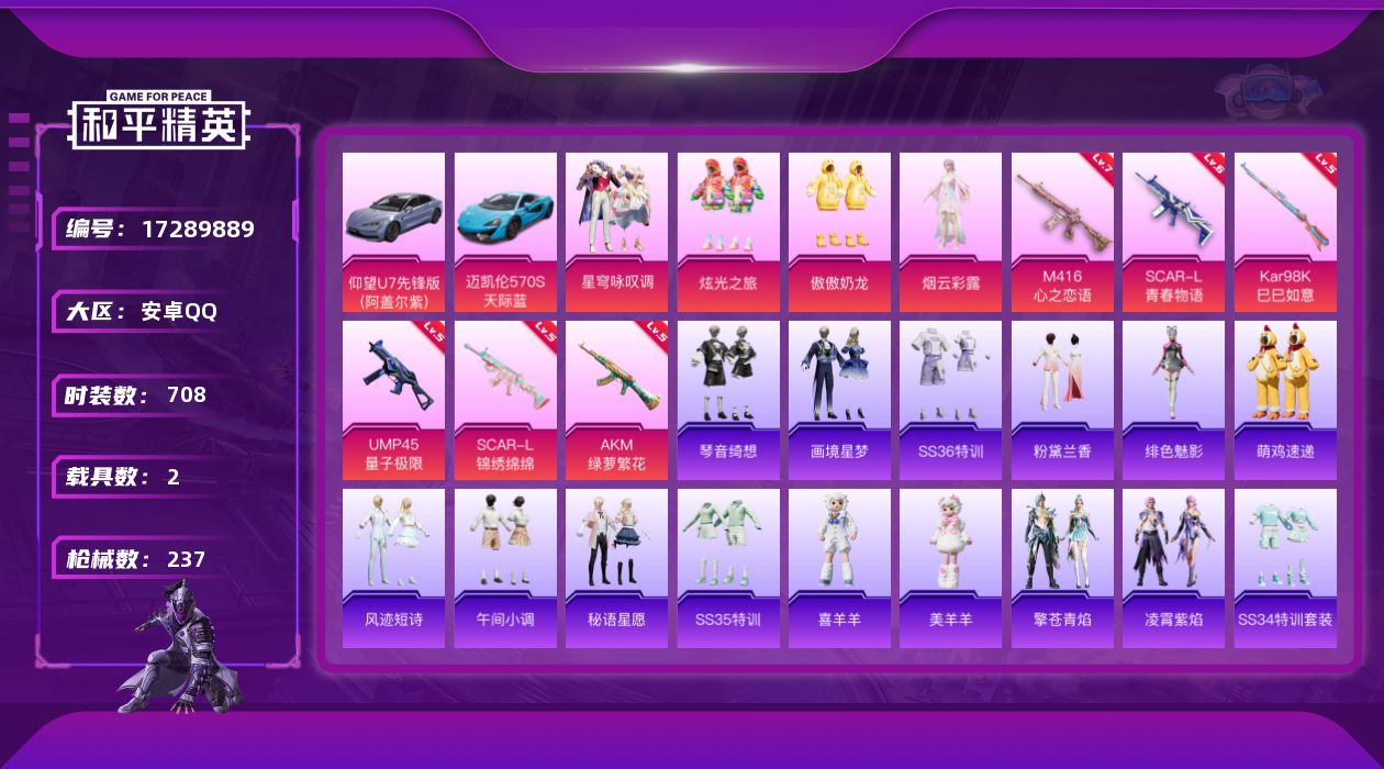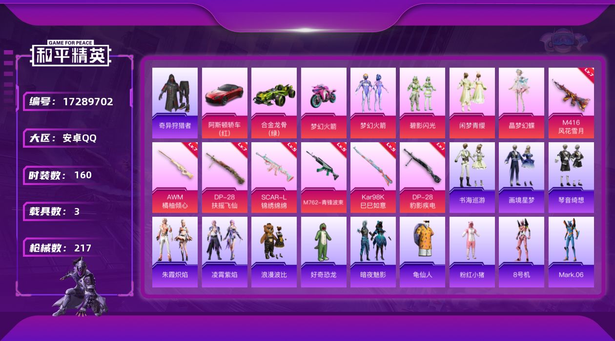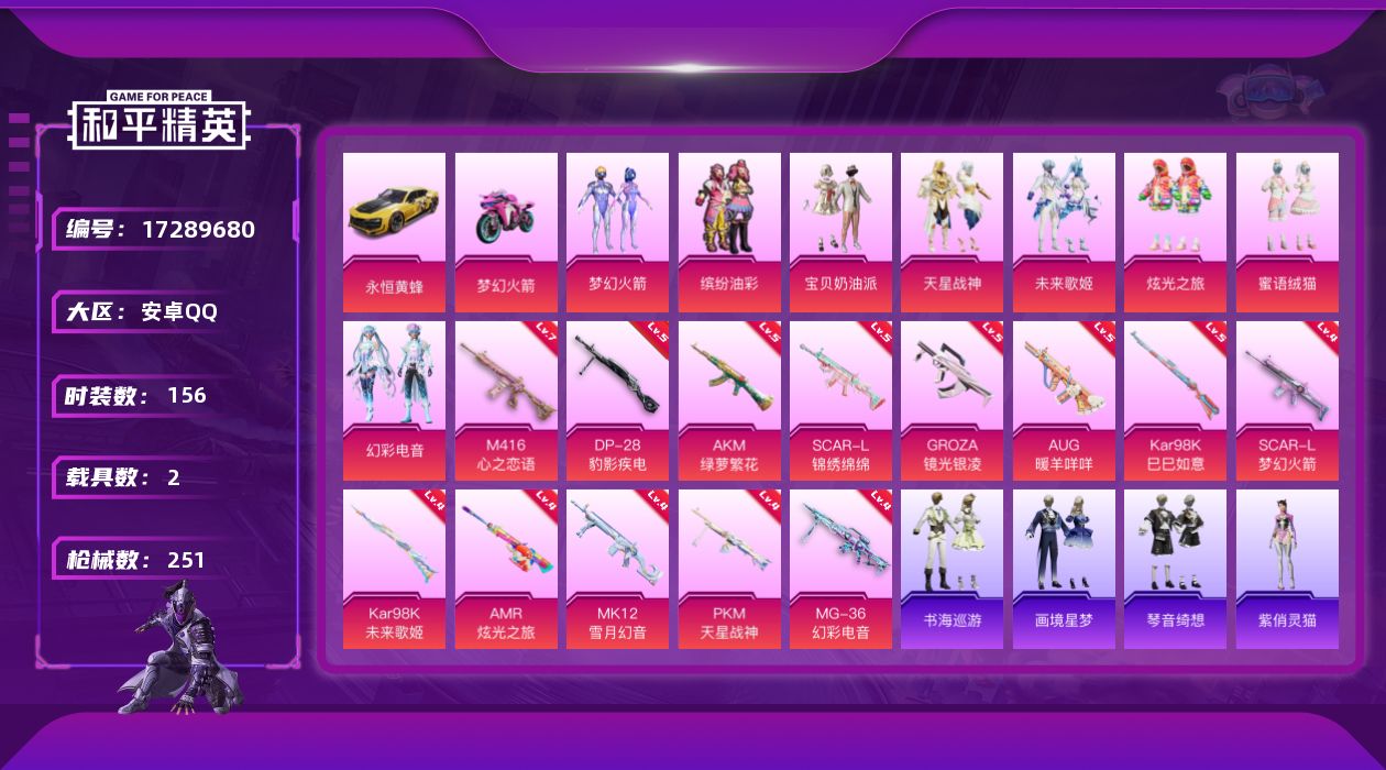 安卓 手Q-4粉装-6特效枪-0载具-1粉色飞行器-4321