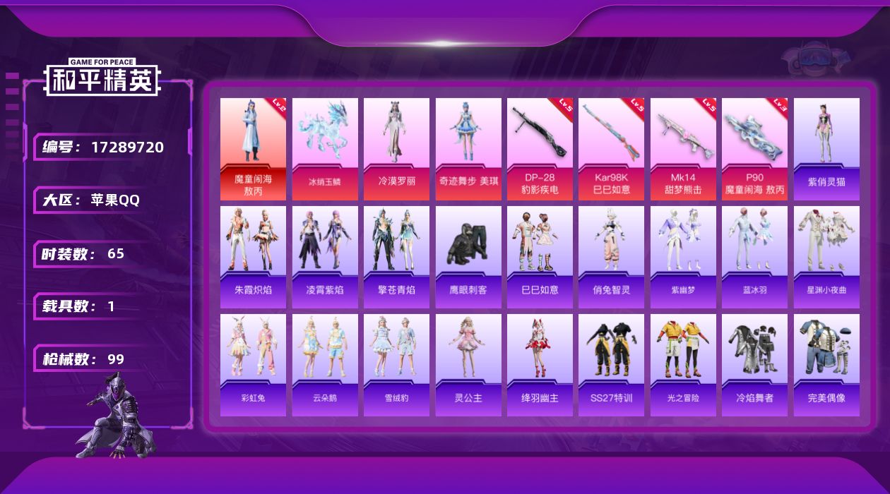 ]苹果 手Q-无敌战神框-5粉装-10特效枪-1载具-5粉色飞