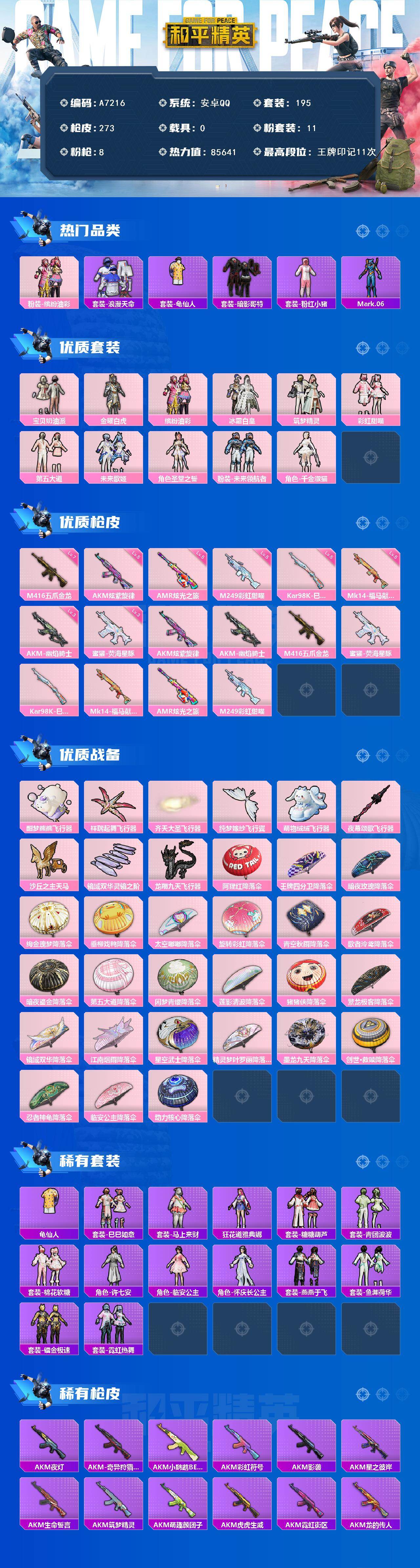 11粉装-8特效枪-0载具-9粉色飞行器-85641热力值-11王牌印记-195套装-273枪皮