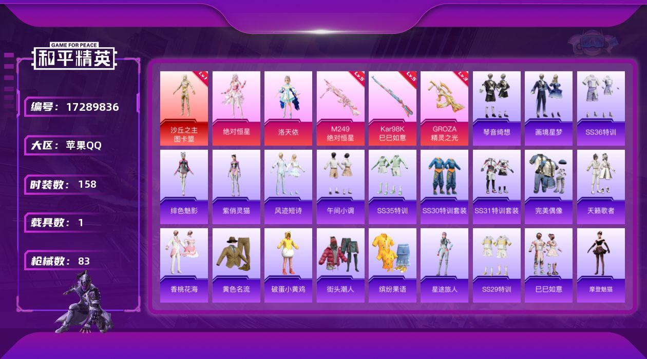 1载具-41套装-83枪皮-1红装1载具2粉装9特效枪1热门41套装83枪皮