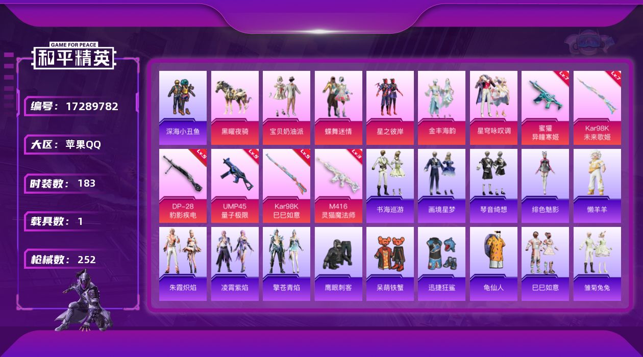 [17289720]苹果 手Q-1神装-3粉装-4特效枪-1载具-4粉色飞行器-