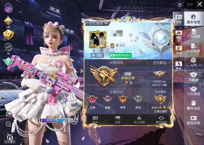 1载具9粉装8特效枪3热门108套装156枪皮 10印记 历史卓越王牌13星
