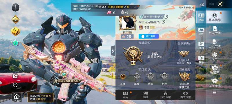 hs44402 安卓手Q-8王牌印记-5粉装-11特效枪-2载具-79650热力值-186套装-24
