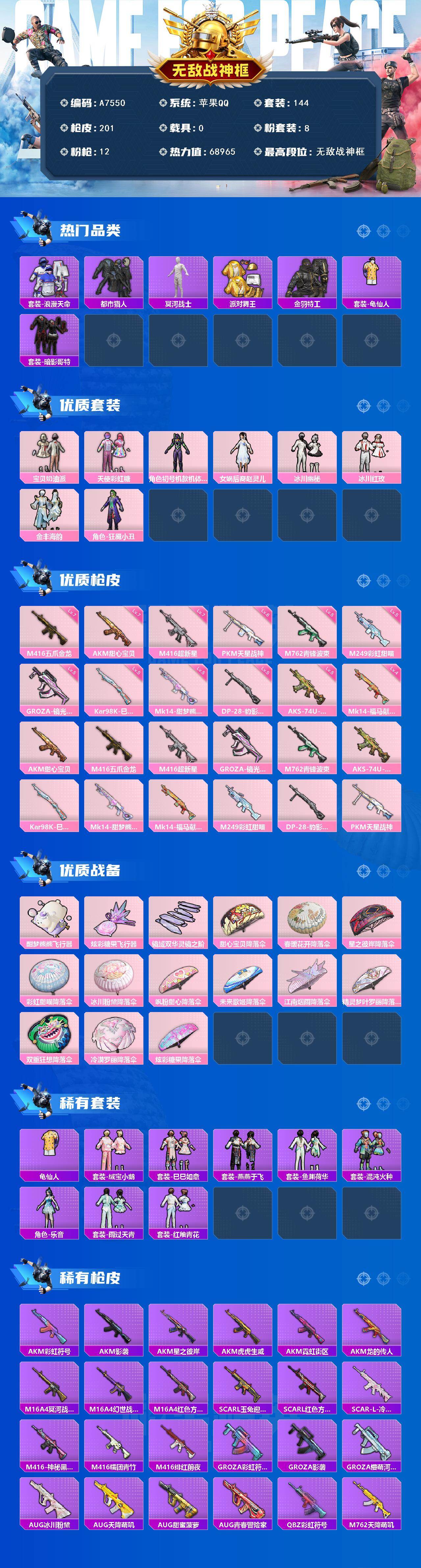 无敌战神框-8粉装-12特效枪-0载具-3粉色飞行器-68965热力值-19王牌印记-144套装-201枪皮