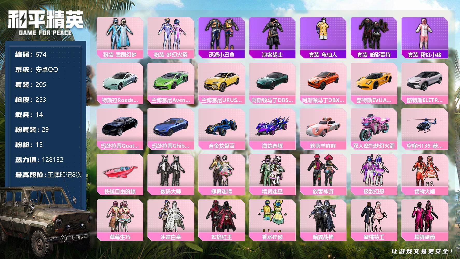 【652】【商品标题】:安卓 手Q-1神装-8粉装-8特效枪-6载具-3粉色飞