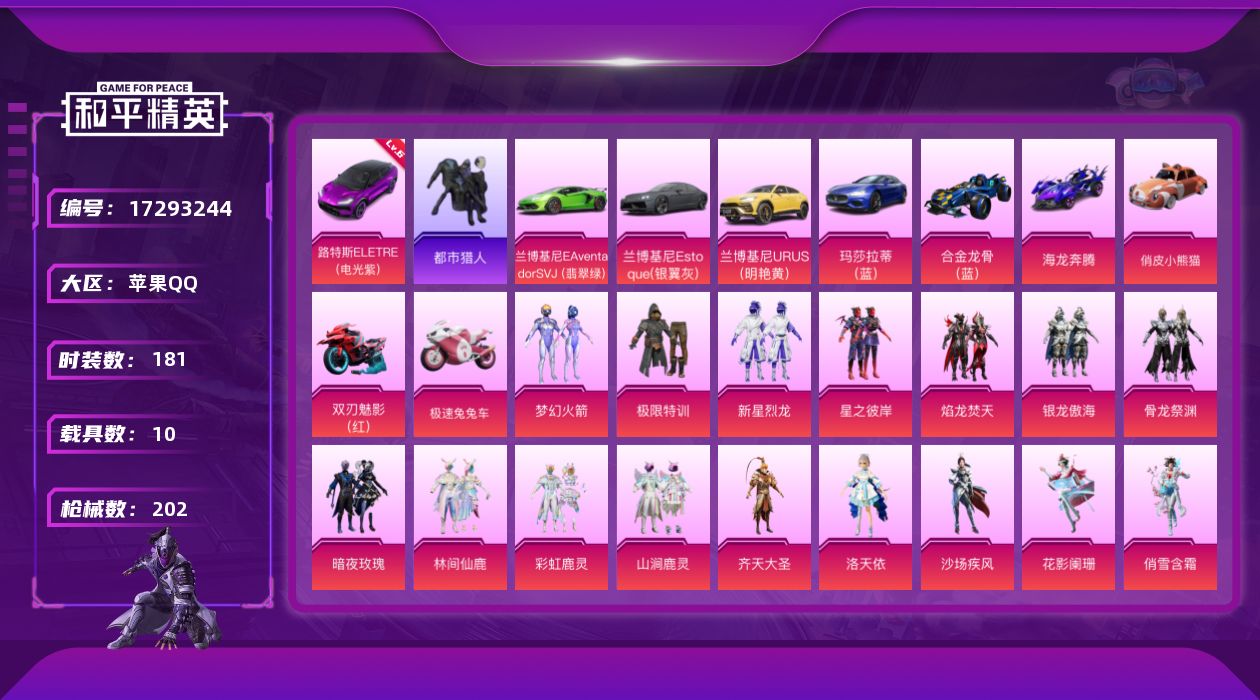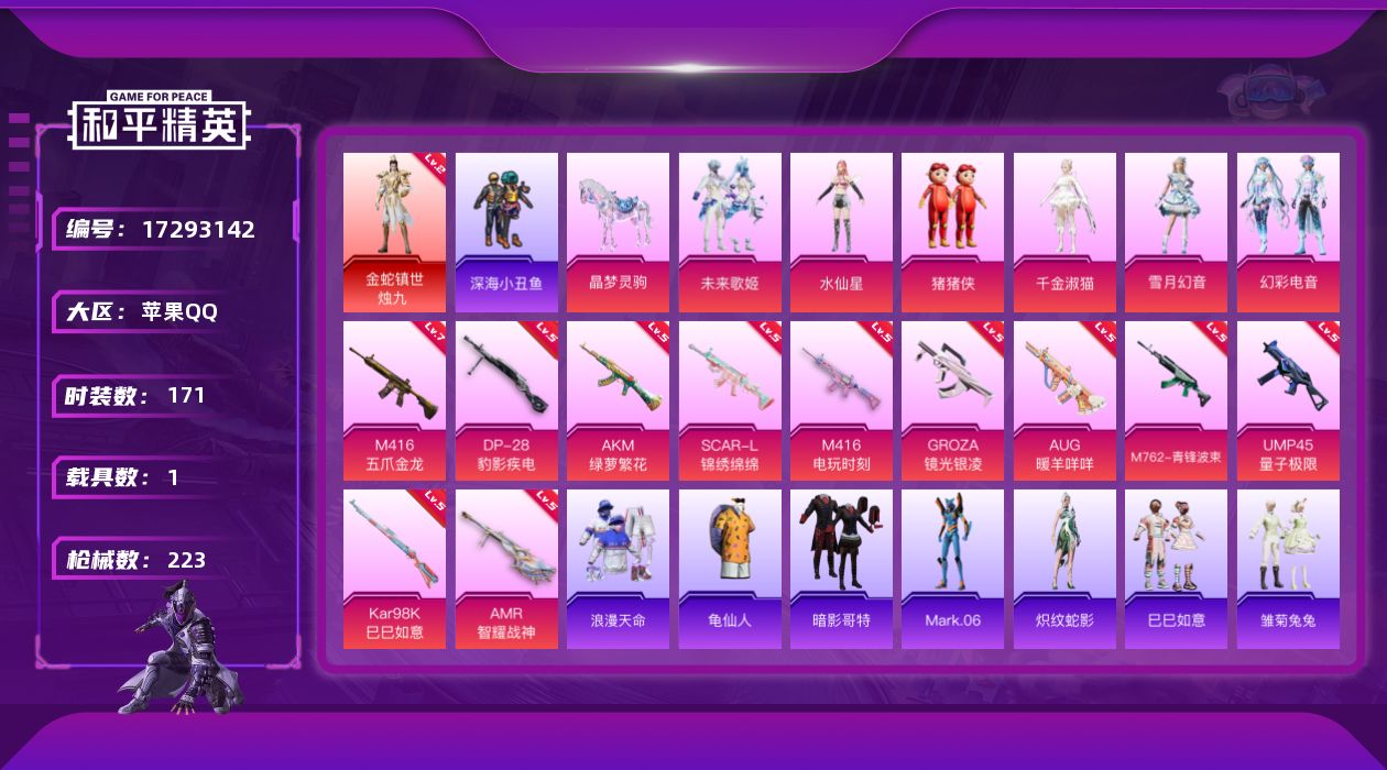 1神装-17粉装-12特效枪-3载具-10粉色飞