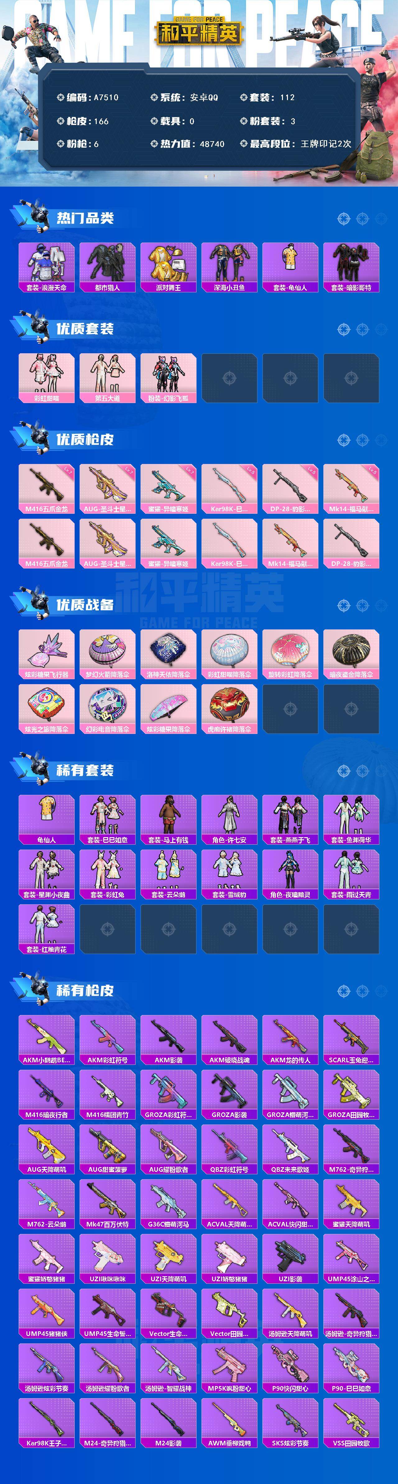 1粉色飞行器-54627热力值-9王牌印记-110套装-164枪皮