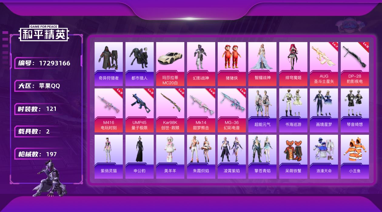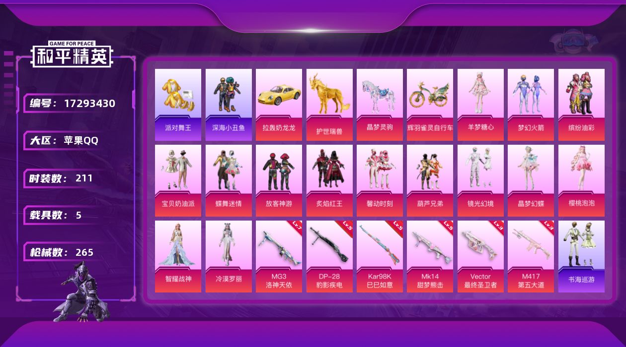 3粉装-6特效枪-0载具-1粉色飞行器-48740热力值-2王牌印记-112套装-166枪皮